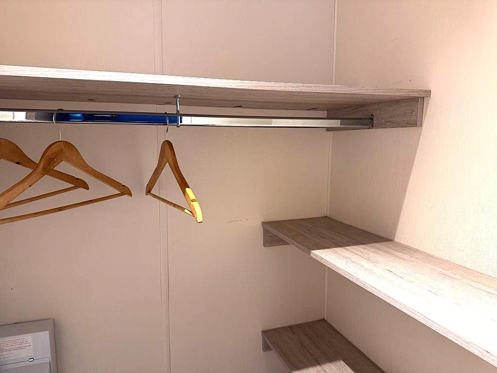 Das erste Schlafzimmer ist mit einem bequemen Boxspring-Doppelbett, einem vom Zimmer aus zugänglichen Einbauschrank, Nachttischen, einem Heizkörper und einem Drehkippfenster zur natürlichen Belüftung ausgestattet. Das zweite Schlafzimmer verfügt über zwei bequeme Einzel-Boxspringbetten, praktische Wandablagen, einen Nachttisch, einen Heizkörper und ebenfalls ein Drehkippfenster.