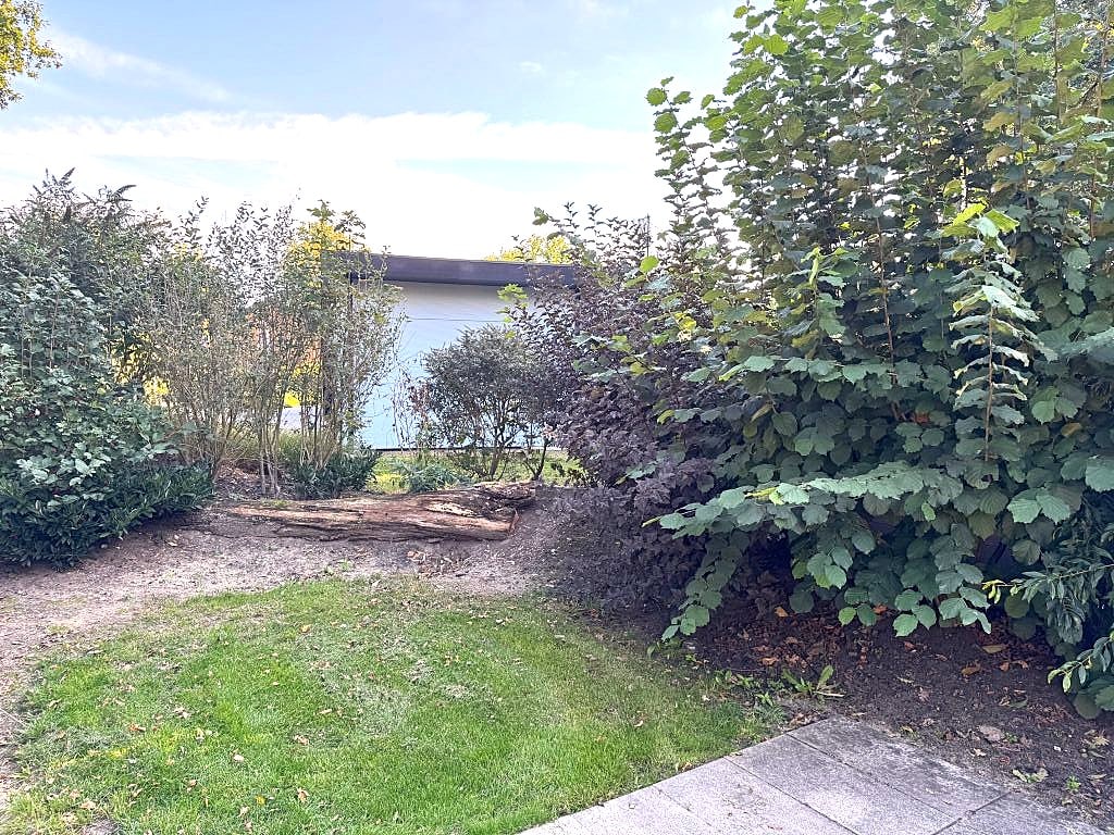 Der Garten fügt sich nahtlos in seine natürliche Umgebung ein und bildet eine harmonische Einheit mit der umgebenden Landschaft. Die Terrasse und die weitläufige Rasenfläche unterstreichen die grüne, erholsame Atmosphäre dieser Oase der Entspannung. Hier finden Sie völlige Entspannung abseits der Hektik des Alltags. Der Garten ist von einer Bepflanzung umgeben, die viel Privatsphäre und einen angenehmen Waldcharakter bietet. Ein privater Parkplatz an der Vorderseite des Grundstücks sorgt für zusätzlichen Komfort und Bequemlichkeit.