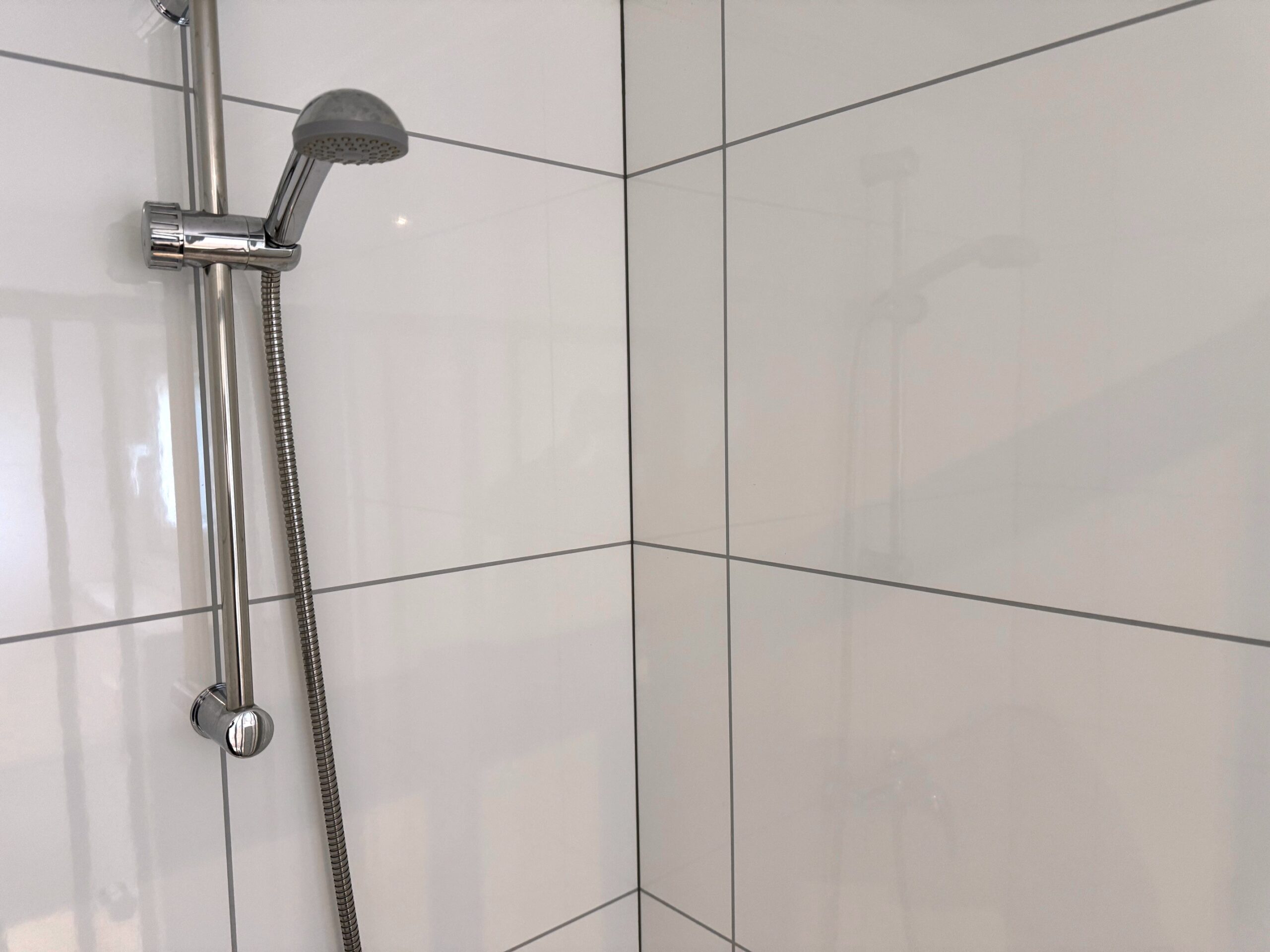 Das moderne Bad ist mit 100% wasserfesten Trespa-Wandplatten ausgestattet, die auch schimmelresistent sind. Außerdem gibt es eine Toilette, ein Waschbecken mit Schrank und Spiegel, eine geräumige Duschkabine, einen Design-Heizkörper, einen Kipp-Dreh-Fensterrahmen und eine mechanische Lüftung.