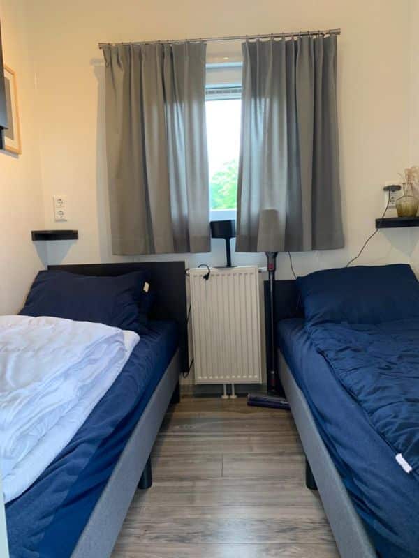 Er zijn 2 ruime slaapkamers waarvan 1 slaapkamer met een tweepersoonsbed, inbouwkasten, dubbel draai-kiep kozijn met ventilatieroosters. De 2e slaapkamer heeft 2 eenpersoonsbedden, dubbel draaikiepraam met ventilatierooster, radiator, opbergkasten, nachtkastjes.