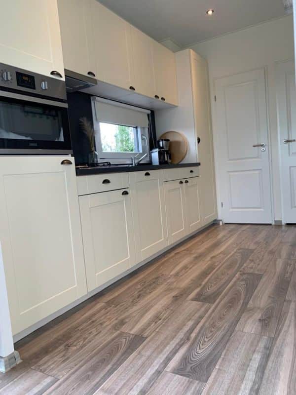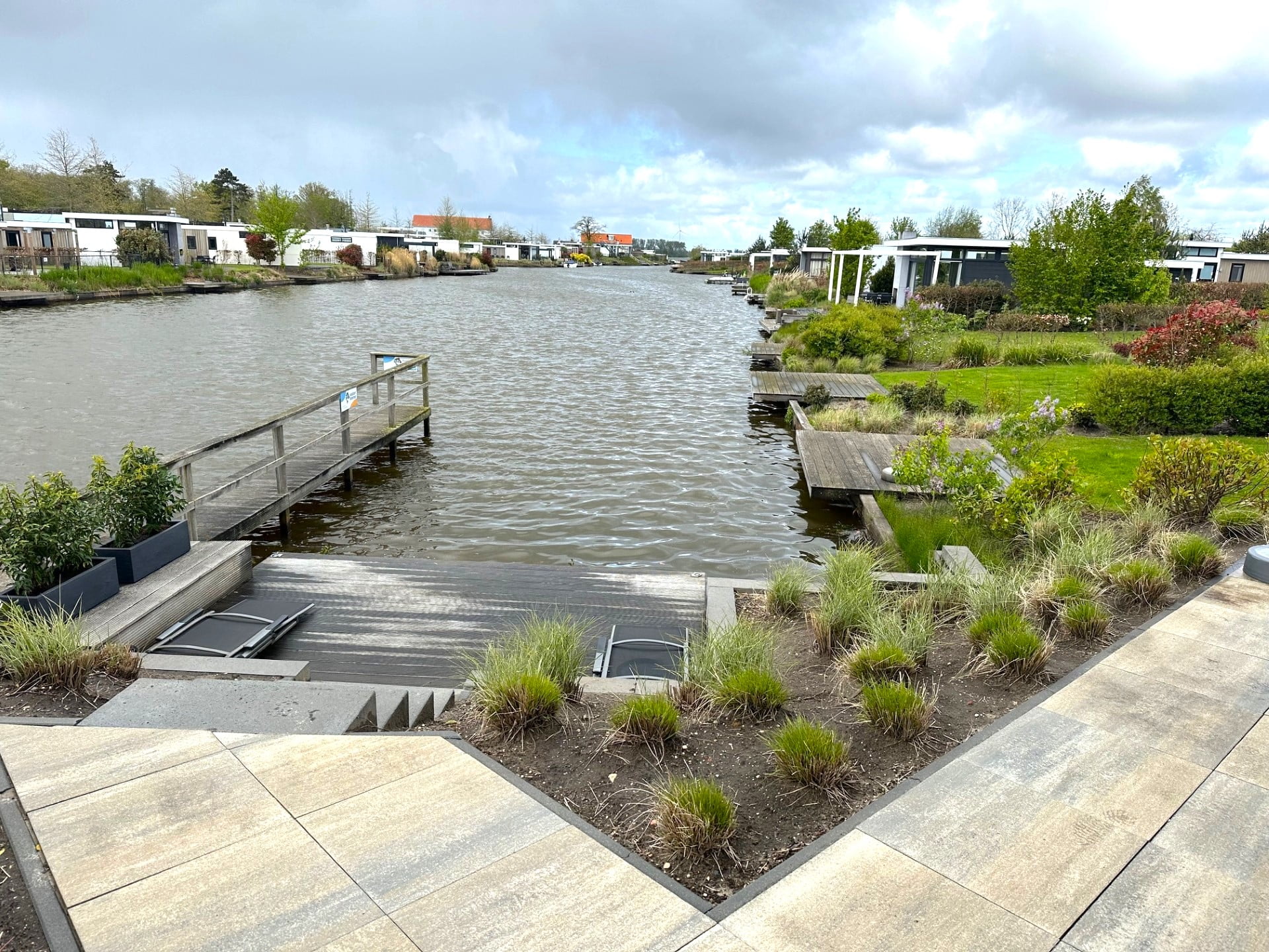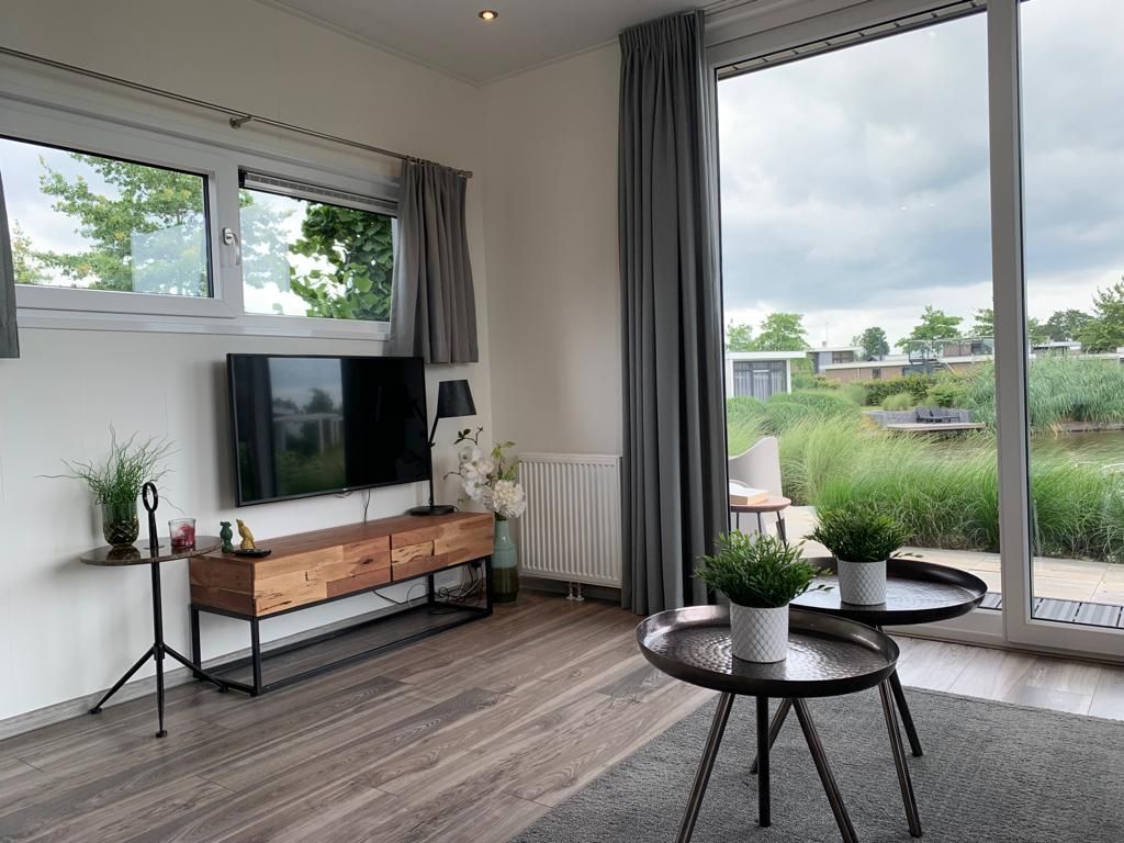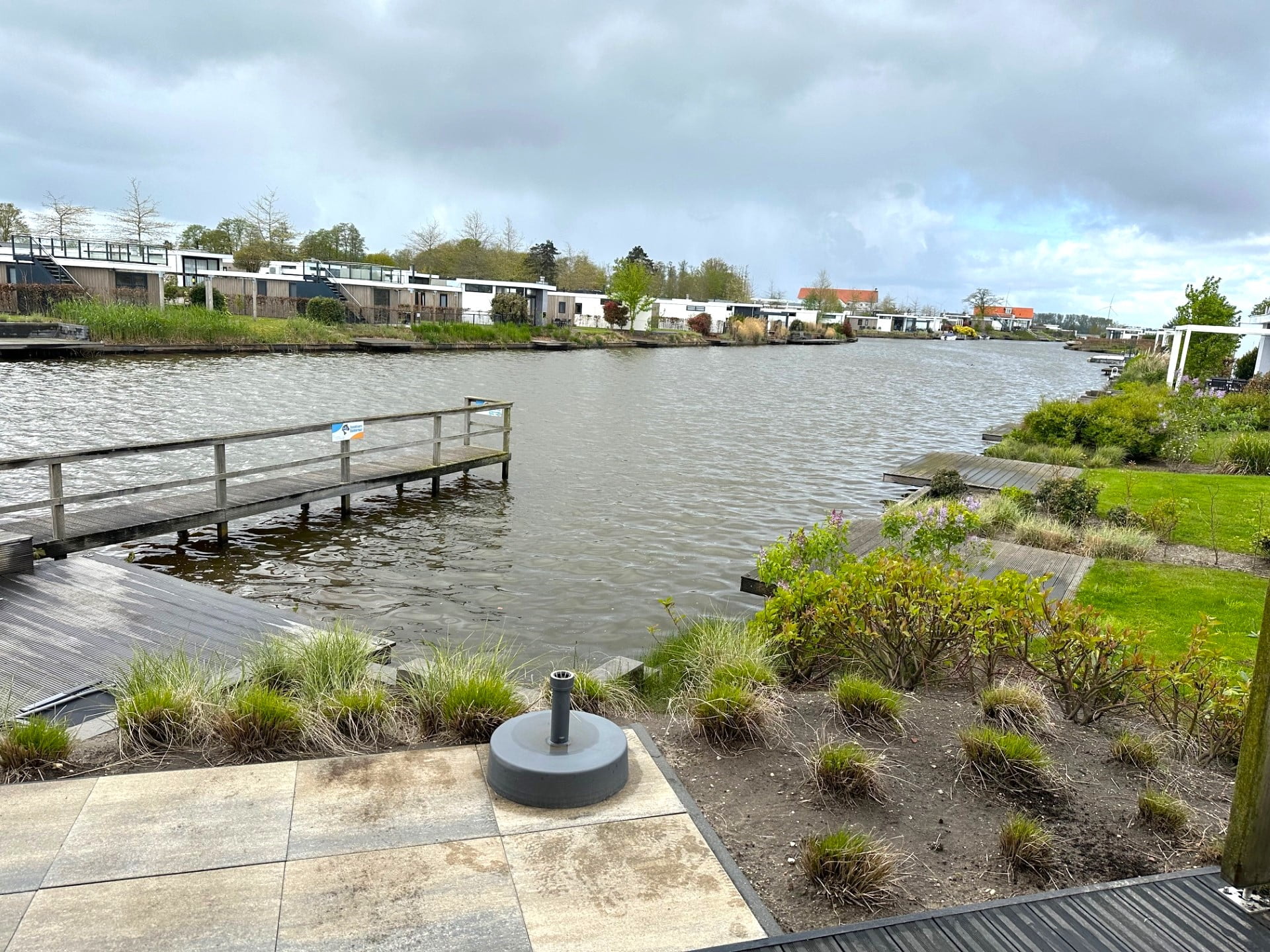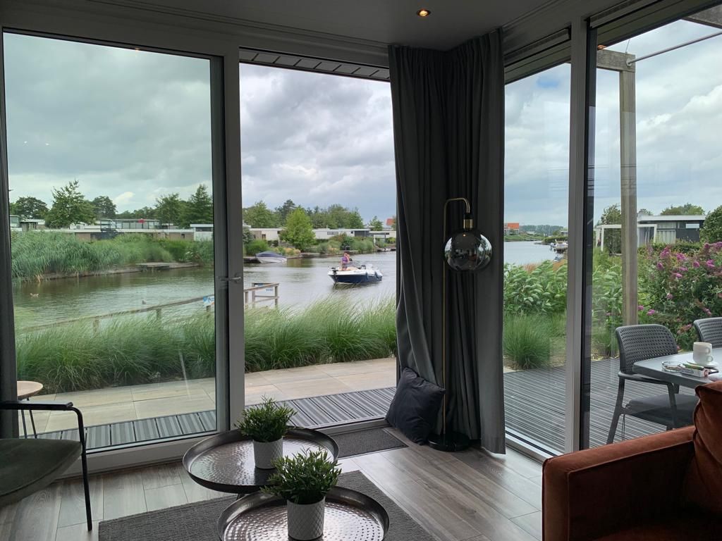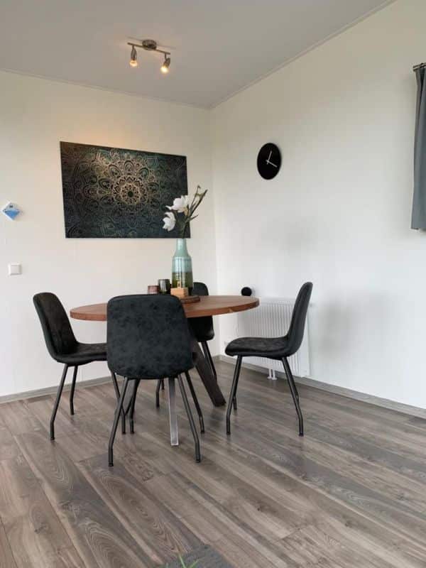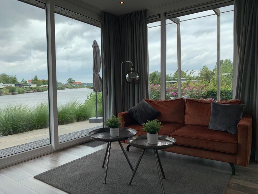 Het vakantiehuis beschikt over een zeer royale woonkamer. De combinatie van het hoge plafon en de grote raampartijen zorgen voor veel lichtinval en geven u een extra ruimtelijk gevoel en natuurlijk een mooi uitzicht over de tuin en het water. Doormiddel van dubbel openslaande terrasdeuren loopt u zo vanuit de woonkamer uw betegeld terras op waar u heerlijk kunt genieten van uw eigen plekje onder de zon direct aan het water.