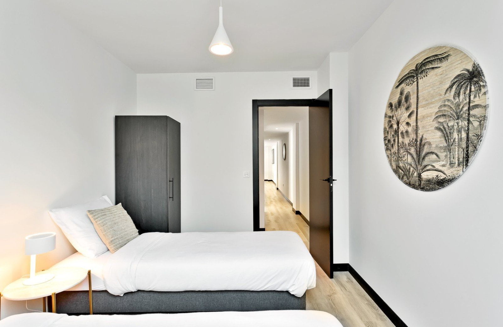 Er zijn 3 of 4 zeer ruime slaapkamers die allen hoogwaardig zijn afgewerkt. De slaapkamers zijn voorzien van een twee persoons boxspring bed of twee losse eenpersoons bedden. De slaapkamers hebben nachtlampjes, stopcontacten en een kledingkast. Er zijn grote raampartijen die zorgen voor veel lichtinval. Verder ligt er een prachtige PVC-laminaatvloer met visgraatpatroon en zijn de muren en plafonds strak afgewerkt.