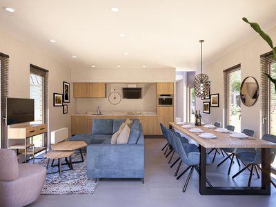 Het vakantiehuis beschikt over een royale woonkamer die hoogwaardig is afgewerkt in rustige kleuren met een open eet en woon gedeelte. Door het gebruik van vele grote raampartijen geniet je van veel ligt inval en creëer je een extra ruimtelijk gevoel. In het vakantiehuis vindt u een moderne, ruime living, ingericht met een stijlvolle design zodat het direct een warme sfeer geeft . Een perfecte plek wanneer u samen wilt genieten van een heerlijke maaltijd, het spelen van een gezelschapsspel of wanneer u simpelweg een film wilt kijken. Doormiddel van openslaande terrasdeuren loopt u zo vanuit de woonkamer het betegeld terras op waar u heerlijk kunt genieten van de ruime tuin en het prachtige uitzicht over het strand en het IJsselmeer.