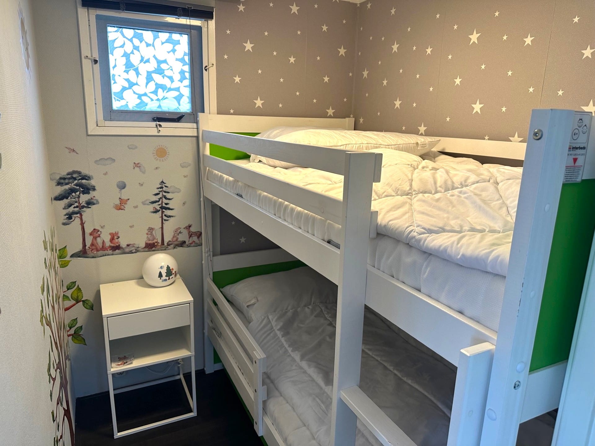 Het vakantiehuis heeft 2 ruime slaapkamers waarvan 1 met een tweepersoonsbed en opbergkasten. De tweede slaapkamer heeft een stapelbed. In de tuin is er een grote tuinhuis aanwezig die je ook nog kan gebruiken als een gasten verblijf.