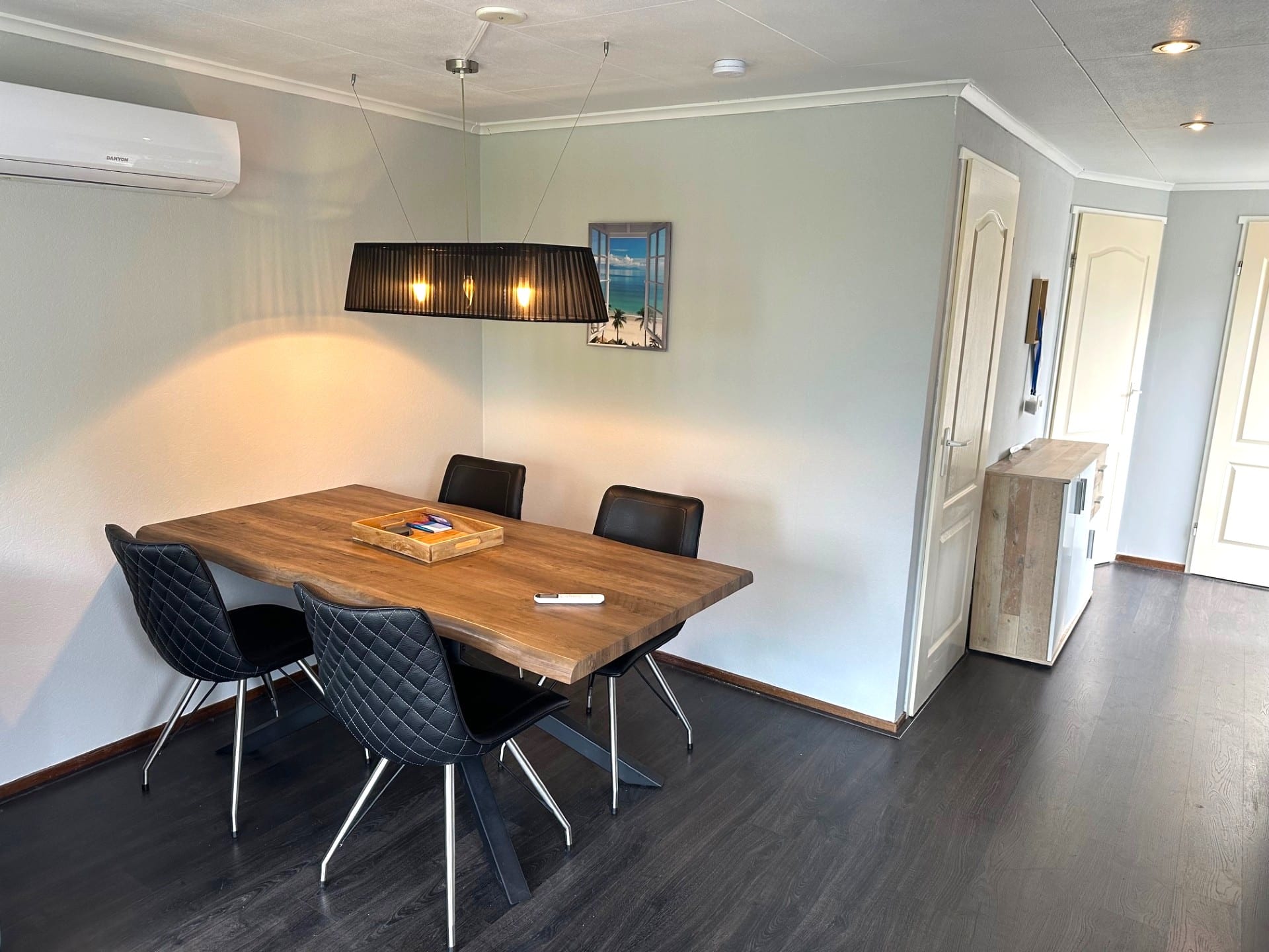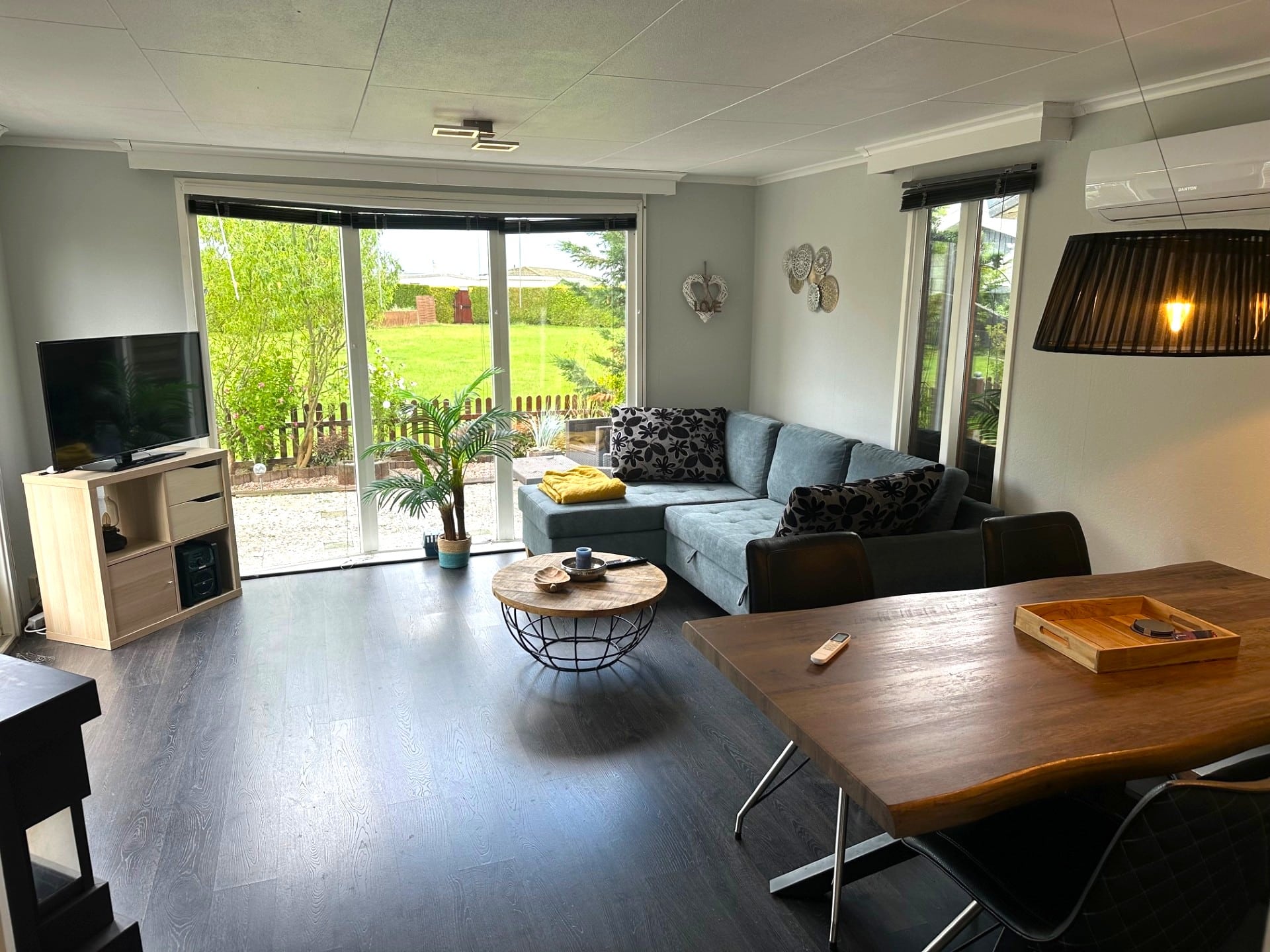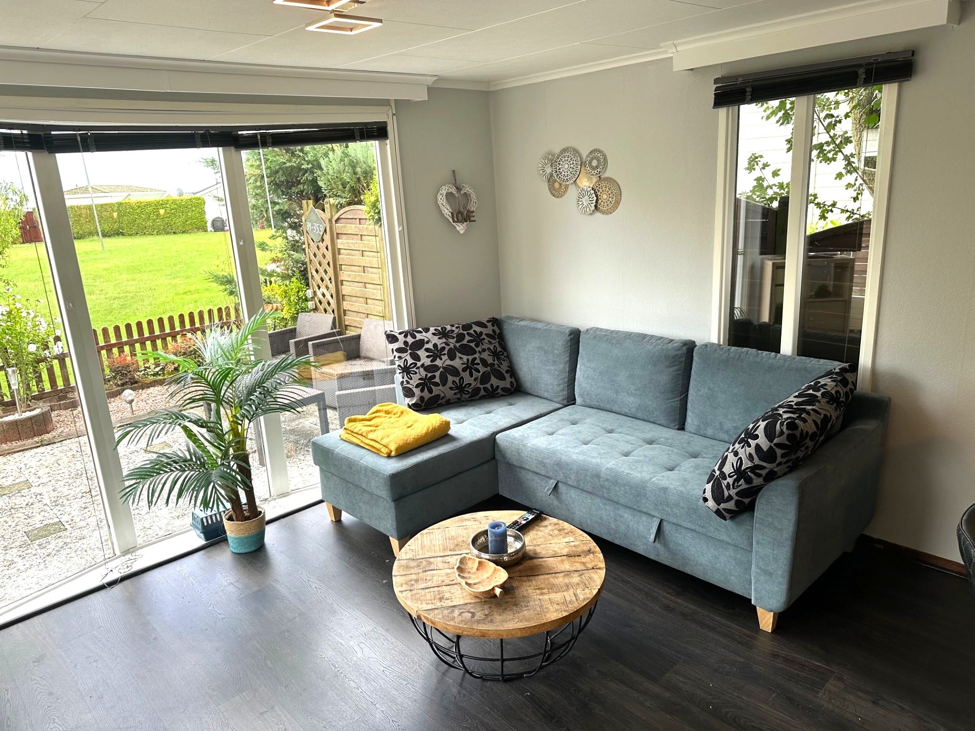 Het vakantiehuis beschikt over een zeer royale woonkamer met een open eet en woon gedeelte. De vele grote raampartijen geven u een extra ruimtelijk gevoel en natuurlijk een mooi uitzicht over het grasveld. Doormiddel van dubbel openslaande terrasdeuren loopt u zo vanuit de woonkamer uw terras op waar u heerlijk kunt genieten van uw eigen plekje onder de zon.