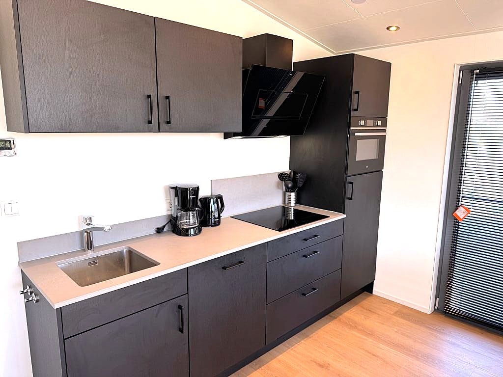 In de moderne ingerichte keuken vindt u alles wat u nodig heeft om uw culinaire kunsten te vertonen, waaronder een koelkast met vriesvak, inductie kookplaat met afzuigkap, combi-magnetron, vaatwasser, waterkoker en koffiezetapparaat.