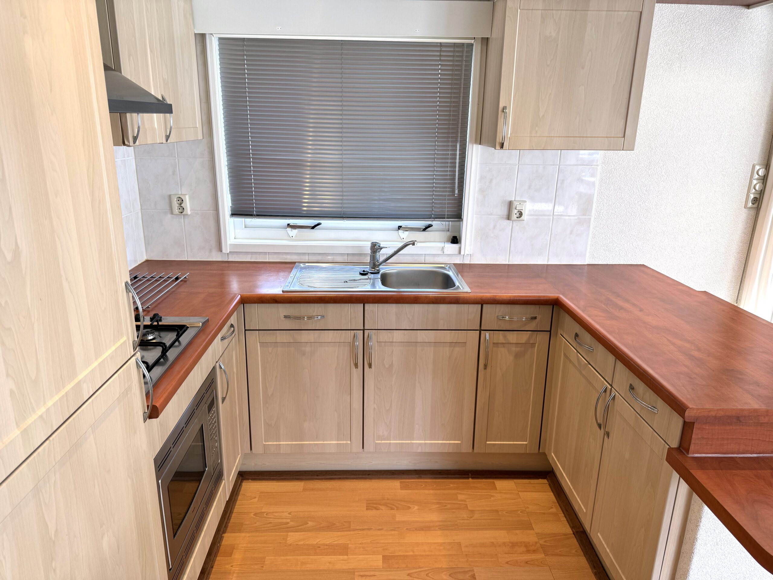 In de ruime keuken vindt u alles wat u nodig heeft om uw culinaire kunsten te vertonen, waaronder een koel-vriescombinatie, gaskookplaat met ingebouwde afzuiger, combi-magnetron en vaatwasser. In de keuken is ook de ingang naar de cv-ruimte waar u gemakkelijk uw spullen kunt opbergen.