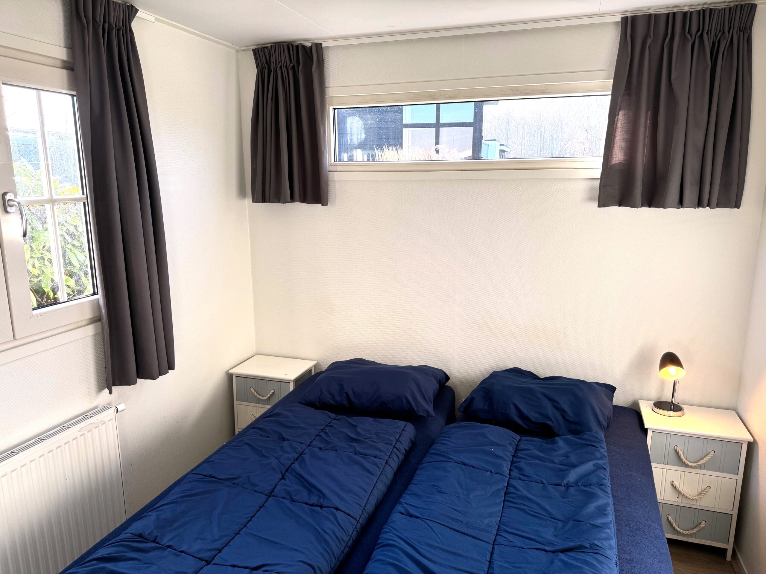 Het vakantiehuis heeft 2 ruime slaapkamers waarvan 1 slaapkamer met een tweepersoonsbed (boxspring), inbouwkasten met schuifdeuren en draai/kiep-raamkozijn met ventilatierooster, nachtkastjes en radiator. De tweede slaapkamer heeft twee eenpersoonsbedden (boxspring) met een open kast en een draai/kiep-raamkozijn met ventilatierooster, nachtkastje en radiator.