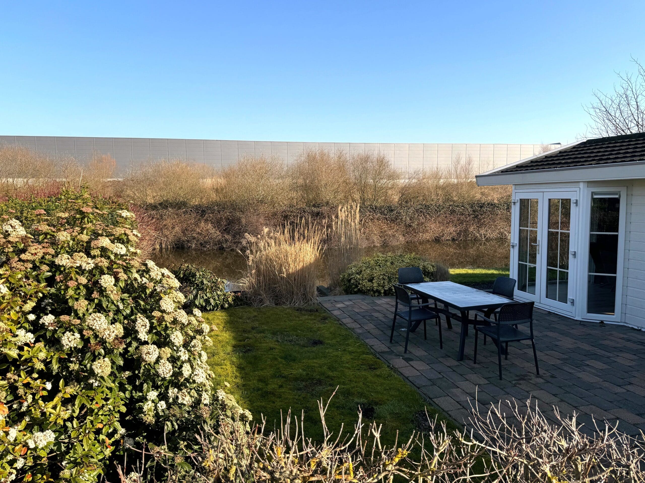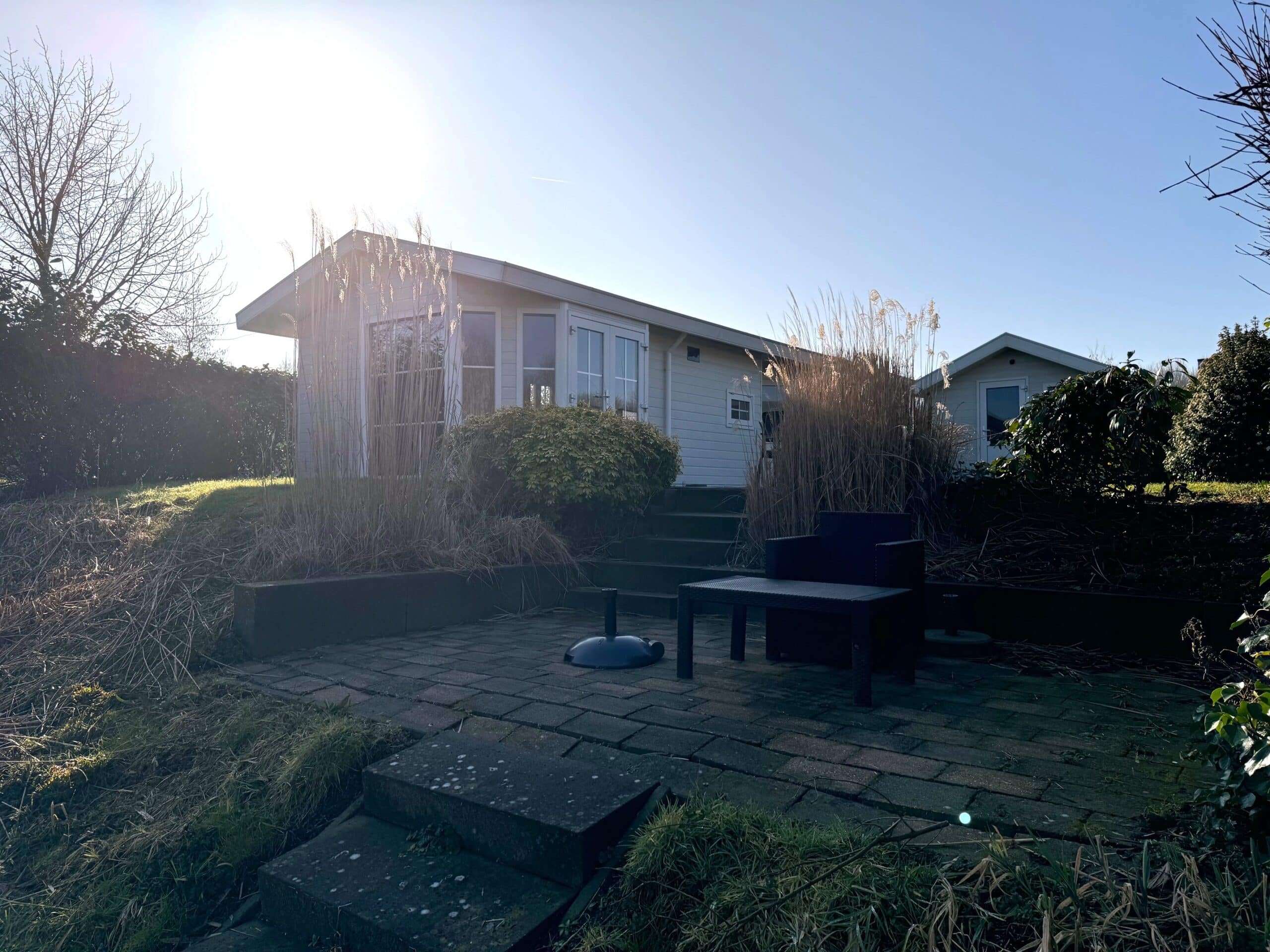Door het gebruik van bomen en planten creëer je een oase van rust en dit zorgt voor extra privacy in de tuin. Er is een betegeld terras en er is een grasveld om de groene oase te benadrukken. Ook is de tuin voorzien van een tuinhuis in dezelfde stijl als het vakantiehuis. De tuin ligt aan een waterpartij en biedt een prachtig uitzicht over het water. Wilt u even ontsnappen aan het drukke alledaagse leven dan is dit uw ideale vakantiehuis. Aan de achterzijde van het vakantiehuis bevindt zich een privé parkeerplaats.