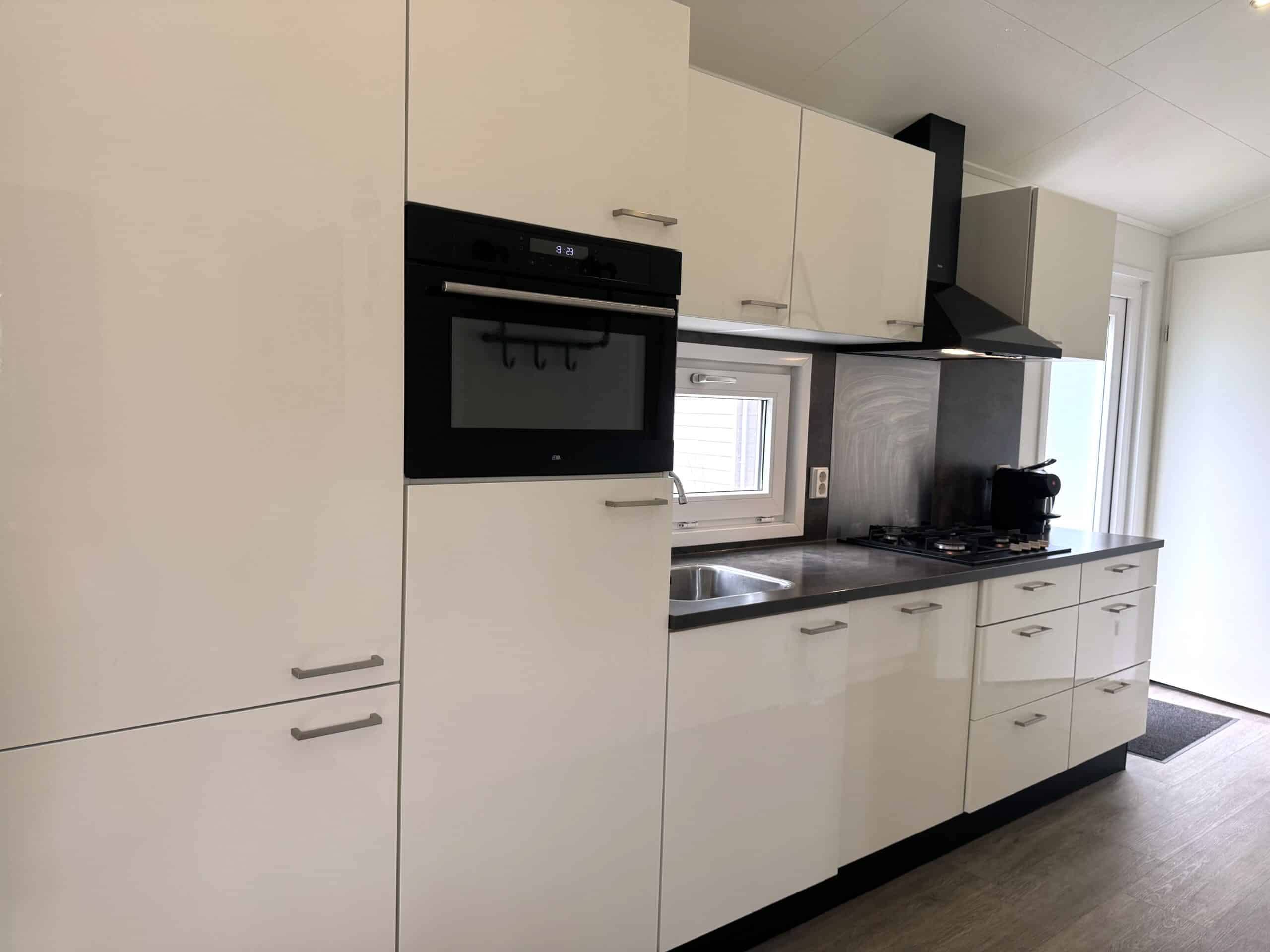 In de moderne ingerichte keuken vindt u alles wat u nodig heeft om uw culinaire kunsten te vertonen, waaronder een koel-vries combinatie, kookplaat met ingebouwde afzuiger, combi-magnetron, vaatwasser, waterkoker en koffiezetapparaat.
