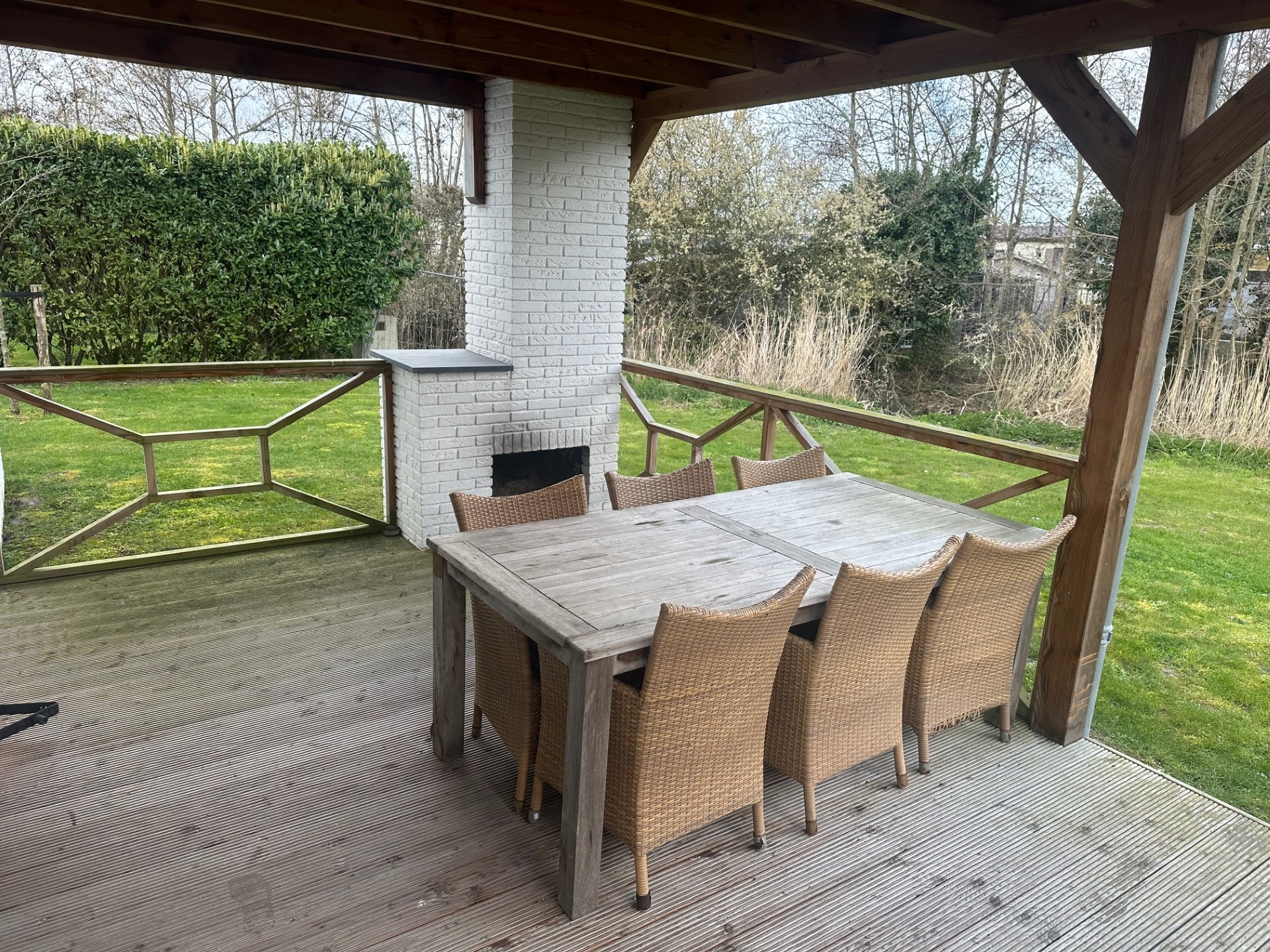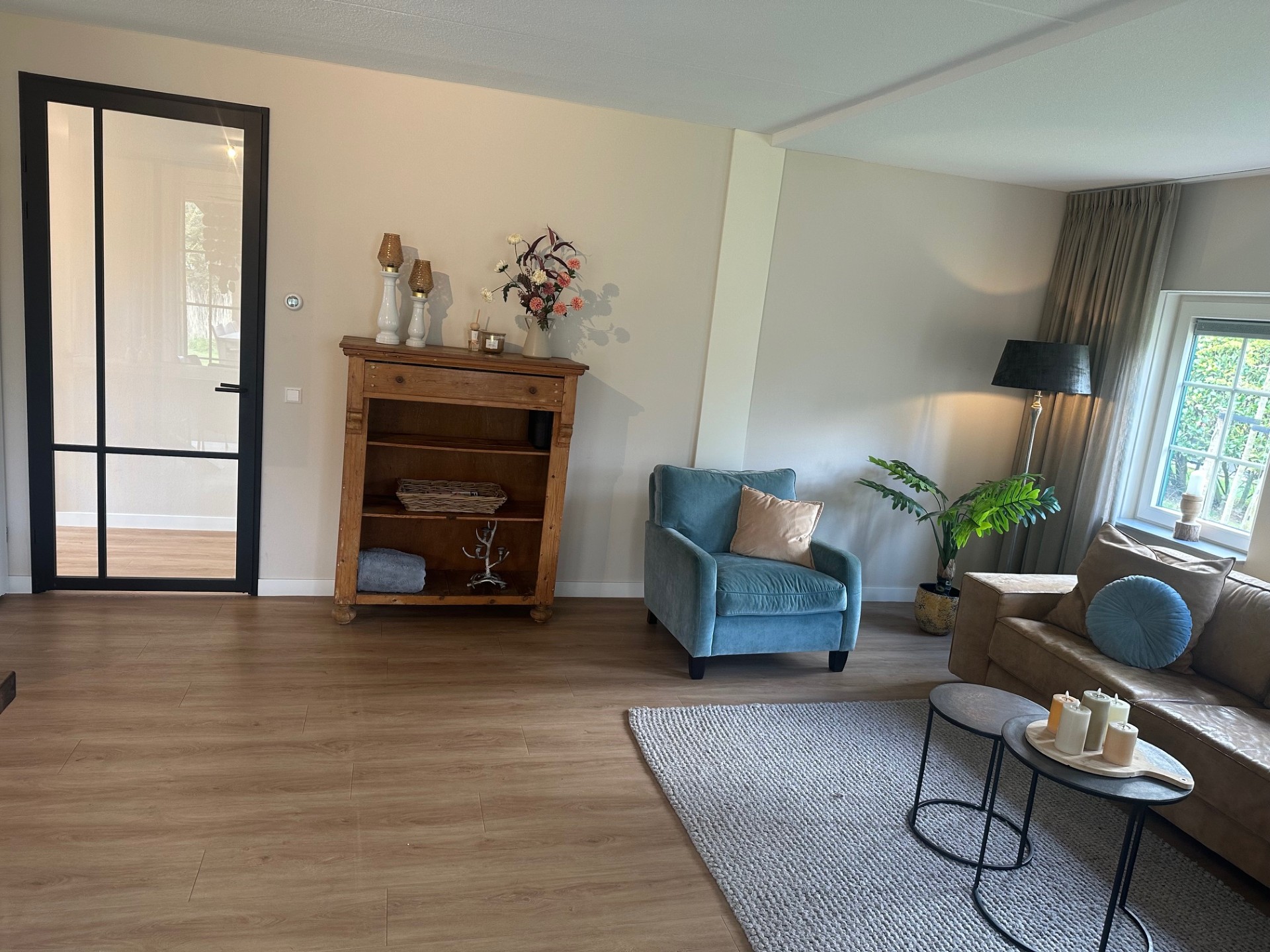 De luxe villa beschikt over een zeer royale woonkamer met een open eet en woon gedeelte. De combinatie van de royale woonkamer en de vele raampartijen geven u een extra ruimtelijk gevoel en natuurlijk een mooi uitzicht over de tuin. Doormiddel van dubbel openslaande terrasdeuren loopt u zo vanuit de woonkamer uw overdekt terras op waar u heerlijk kunt genieten van uw eigen plekje onder de zon. In de hoek van de overkapping is er een buitenhaard die zorgt voor een gezellige en warme sfeer in de avond.