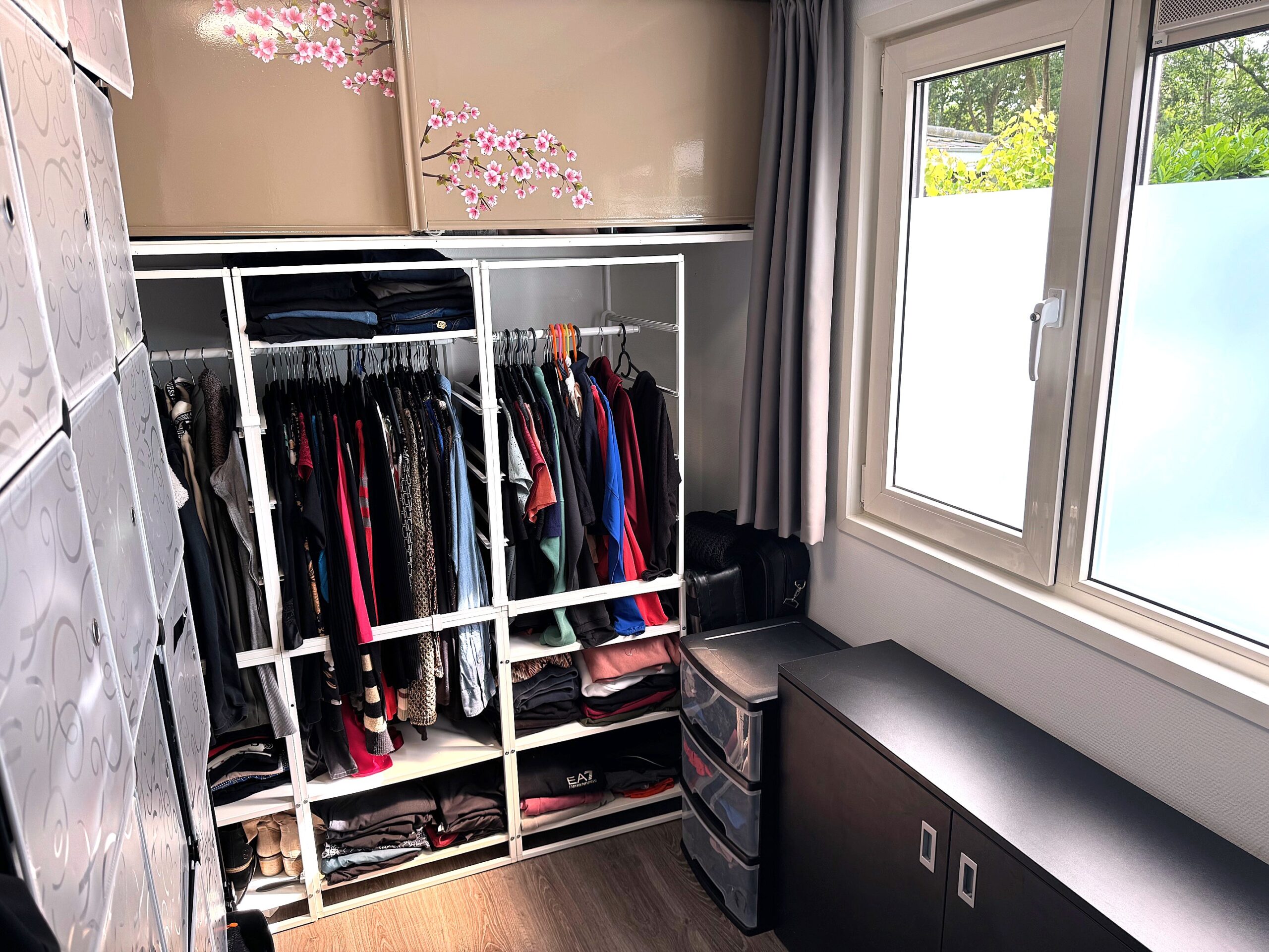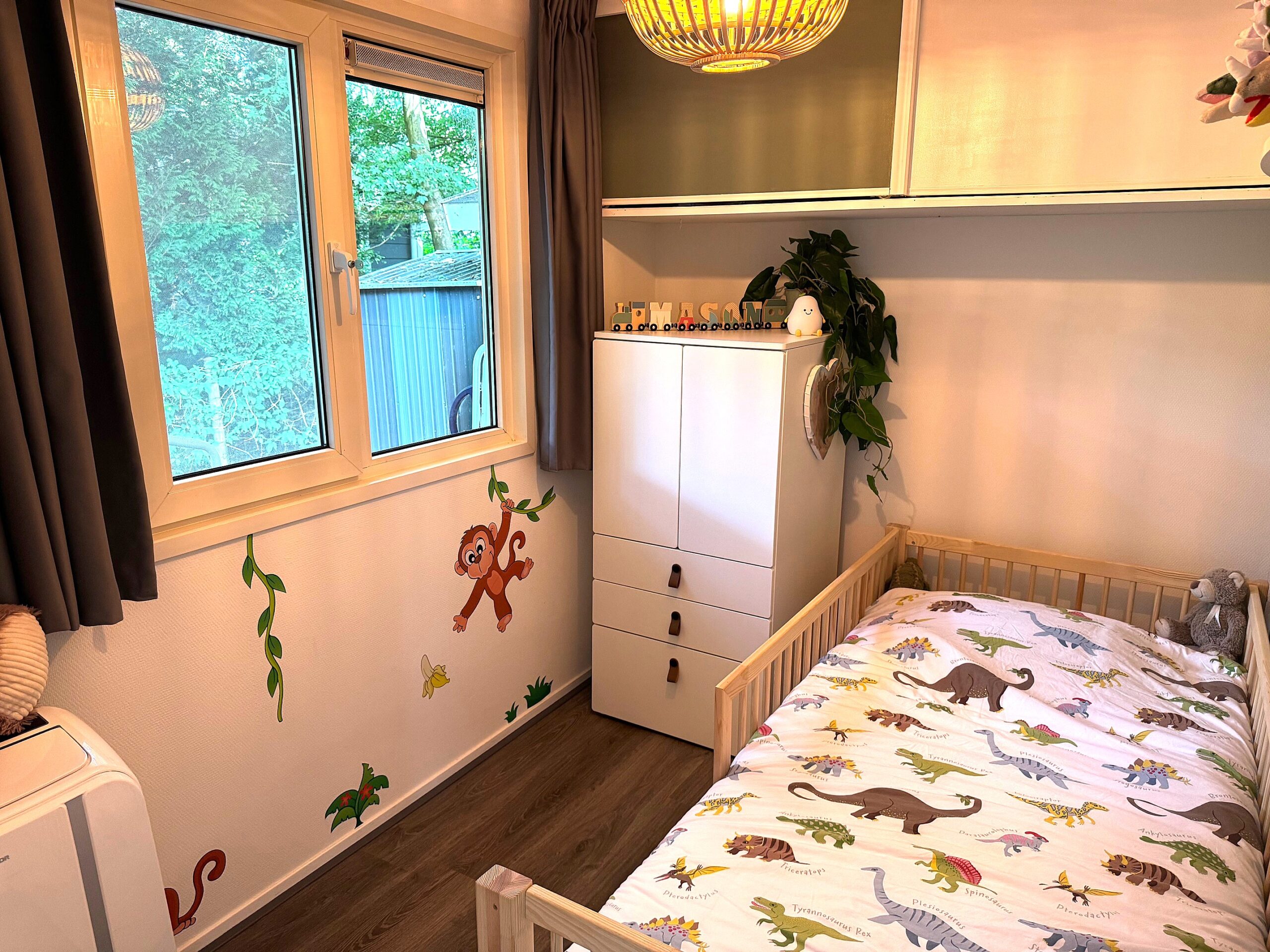 Het vakantiehuis beschikt over drie ruime slaapkamers. De eerste slaapkamer is ingericht met een comfortabel tweepersoons boxspringbed, een inbouwkast met schuifdeuren, opbergkasten, nachtkastjes, een radiator en een draai-/kiepraam met ventilatierooster, wat zorgt voor optimale ventilatie. De tweede slaapkamer is voorzien van praktische wandopbergers, een radiator en eveneens een draai-/kiepraam met ventilatierooster. Deze kamer biedt de mogelijkheid om naar eigen smaak en behoefte te wo
