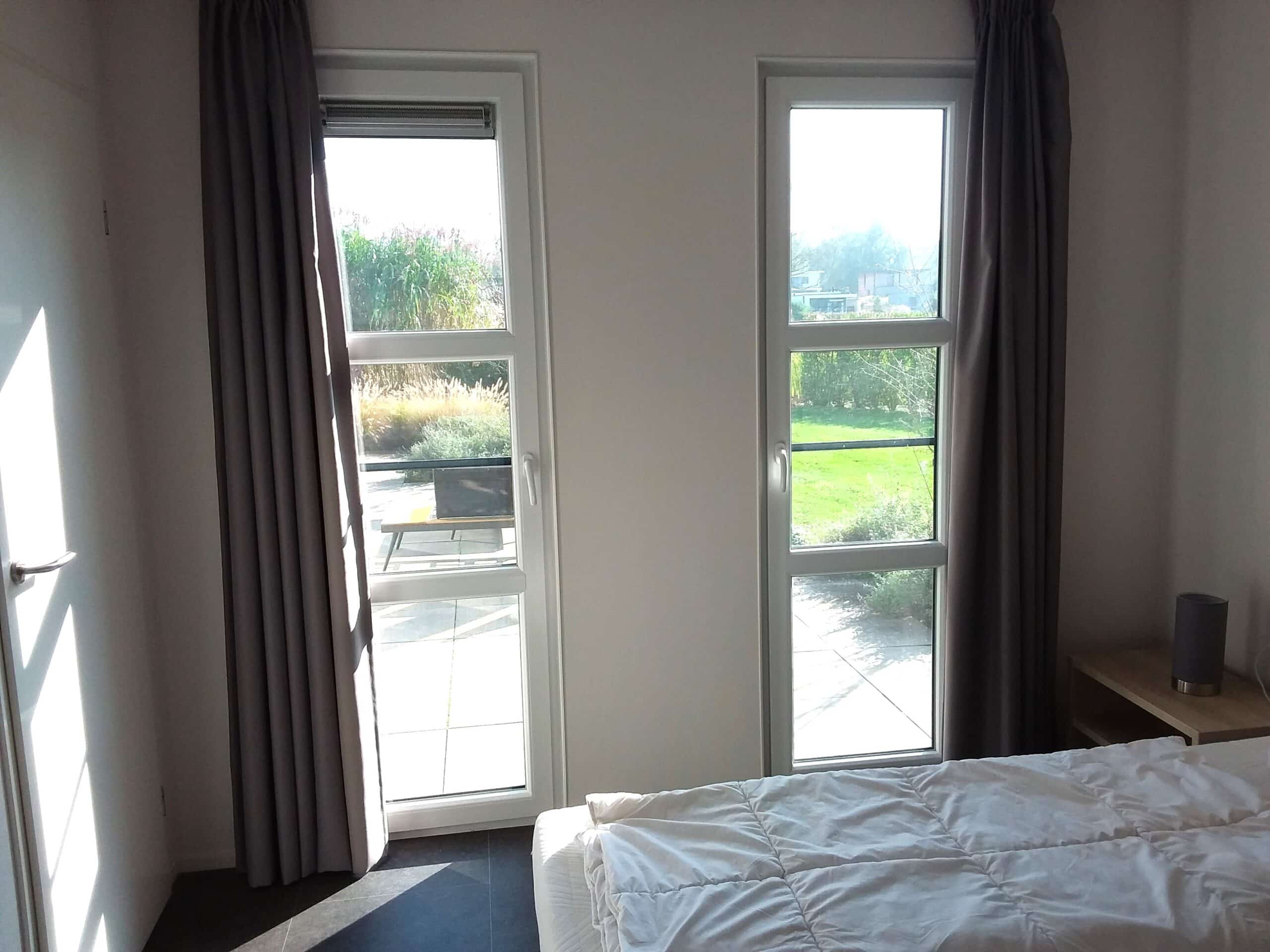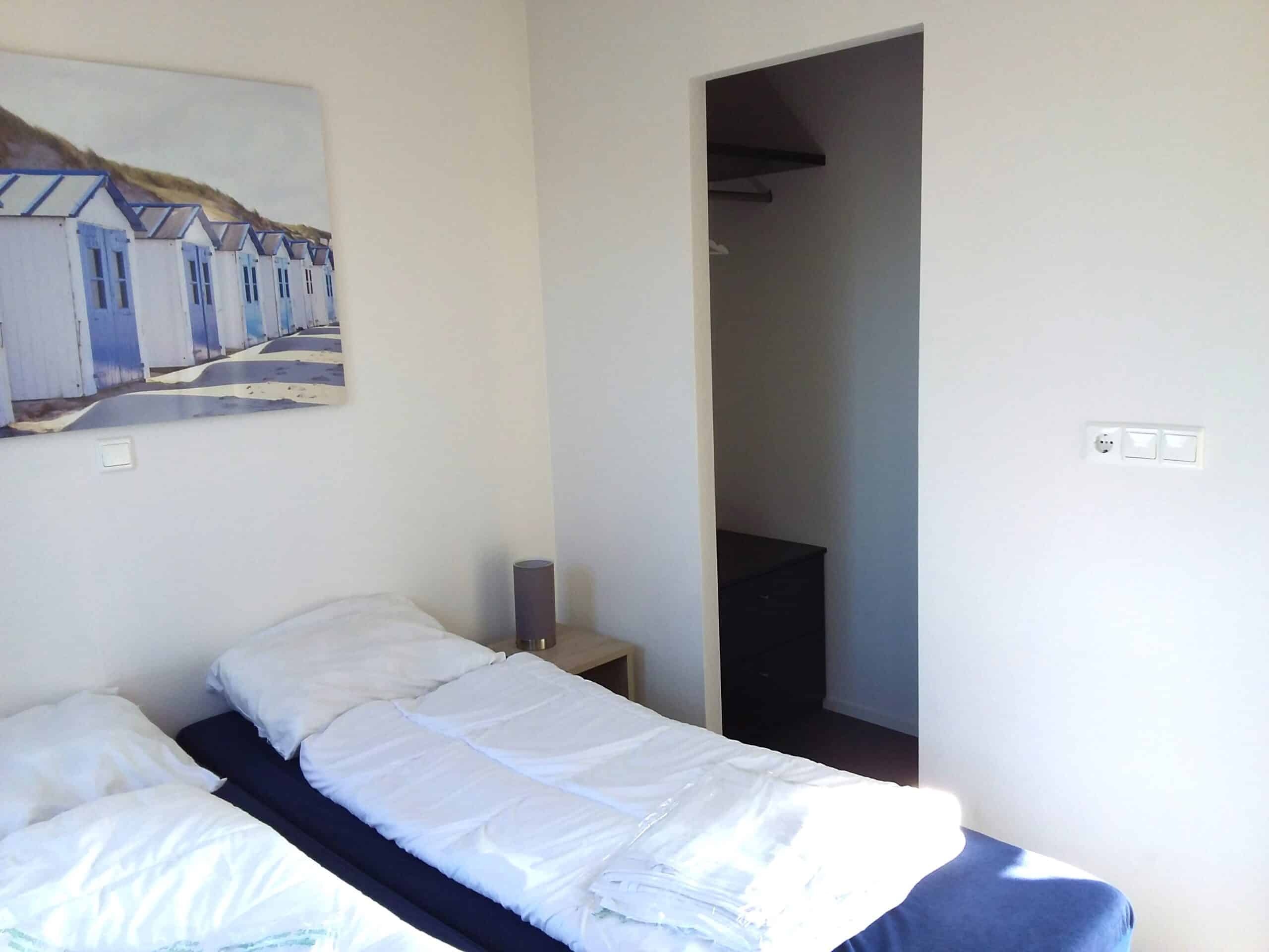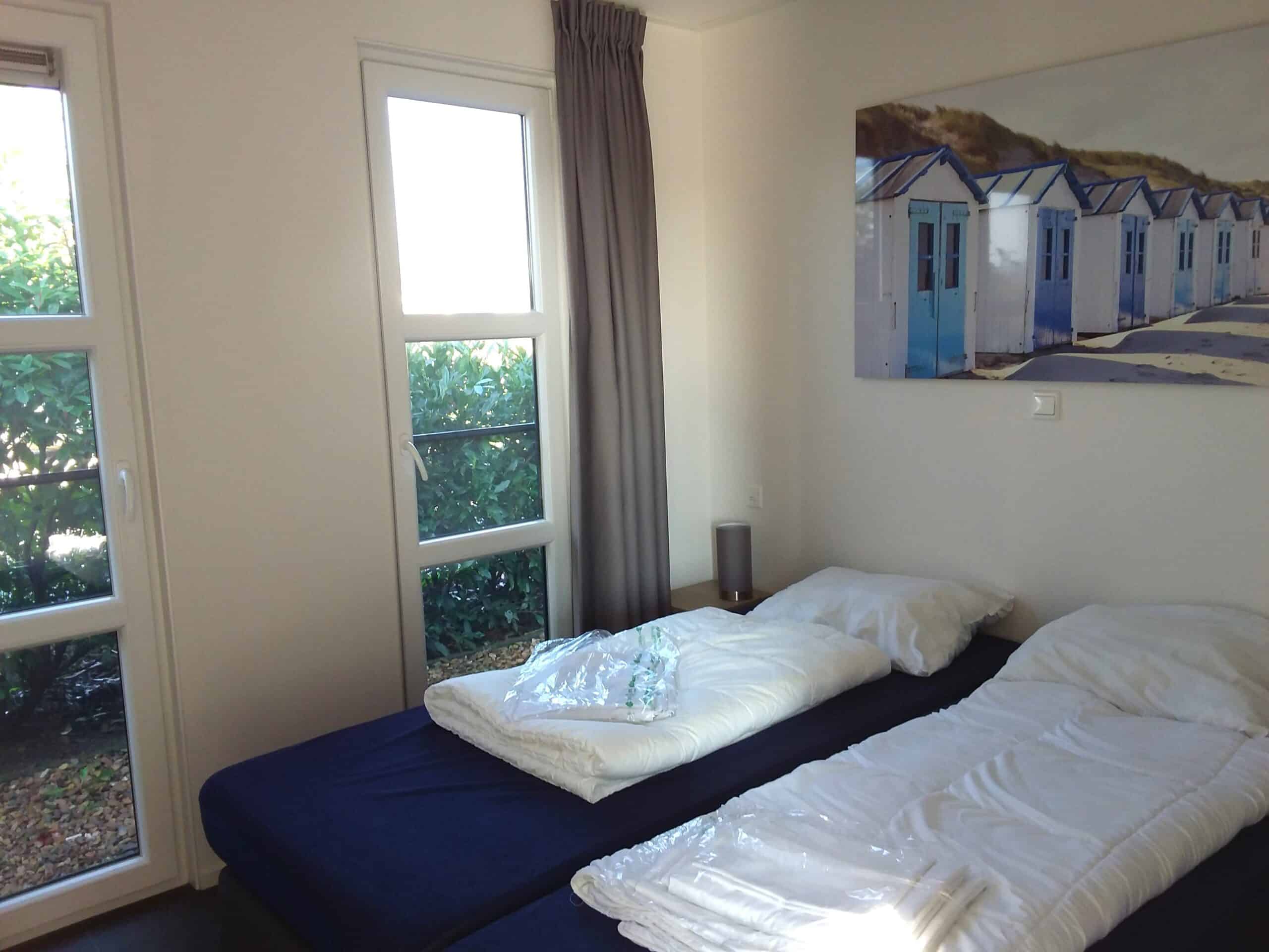 Het vakantiehuis beschikt over 2 ruime slaapkamers waarvan 1 slaapkamer met een tweepersoonsbed (boxspring), inloopkast en draai/kiep-raamkozijnen. De tweede slaapkamer heeft twee eenpersoonsbedden (boxspring) met een inbouwkasten met schuifdeuren en een draai/kiep-raamkozijn.