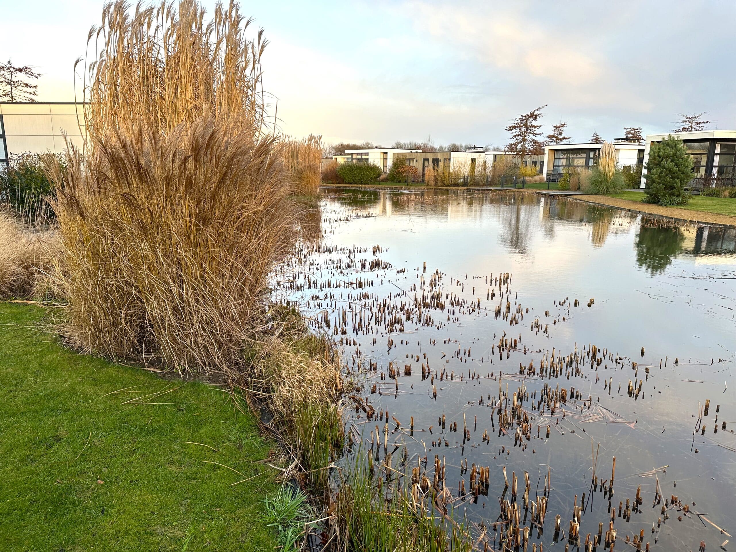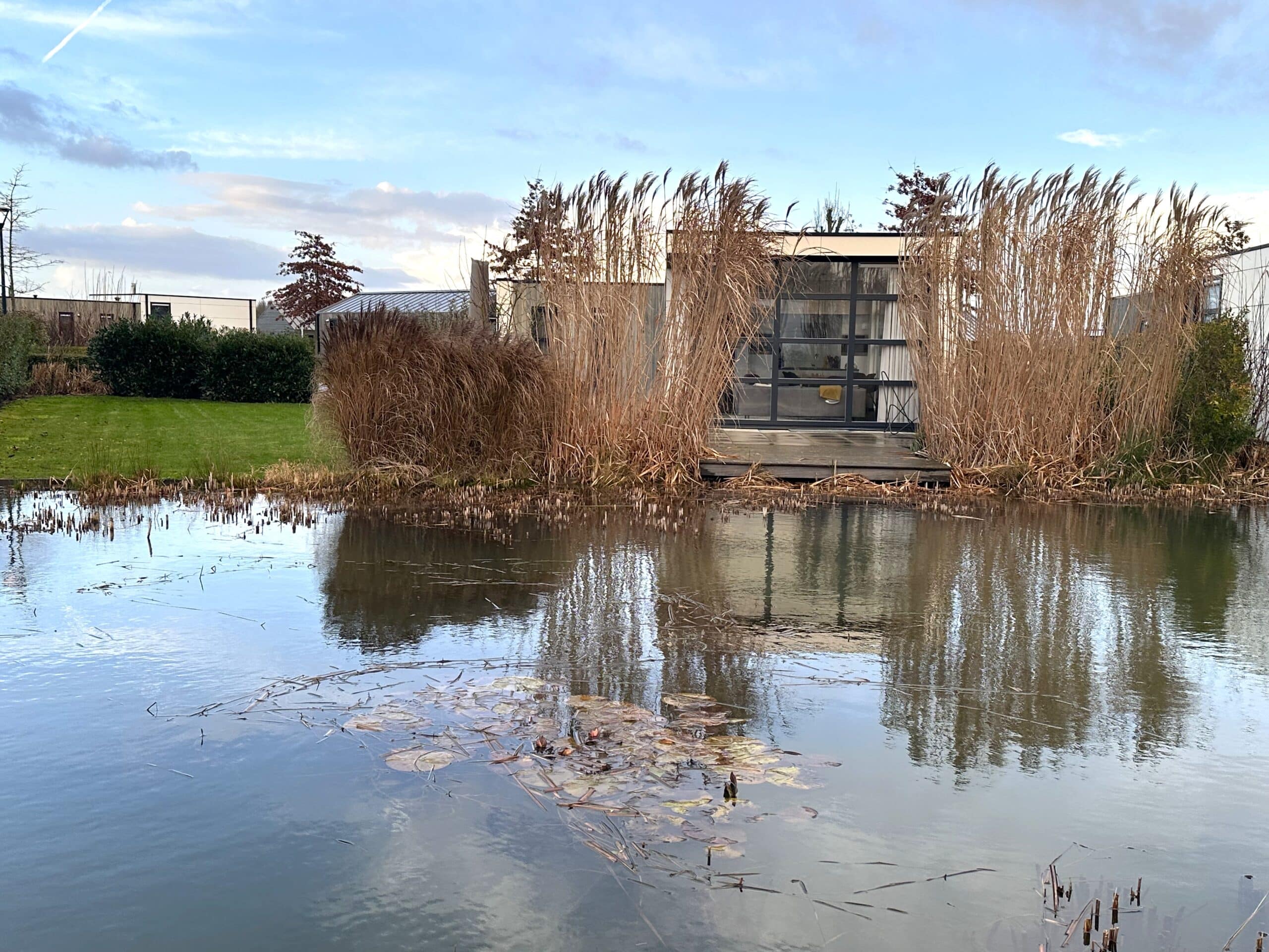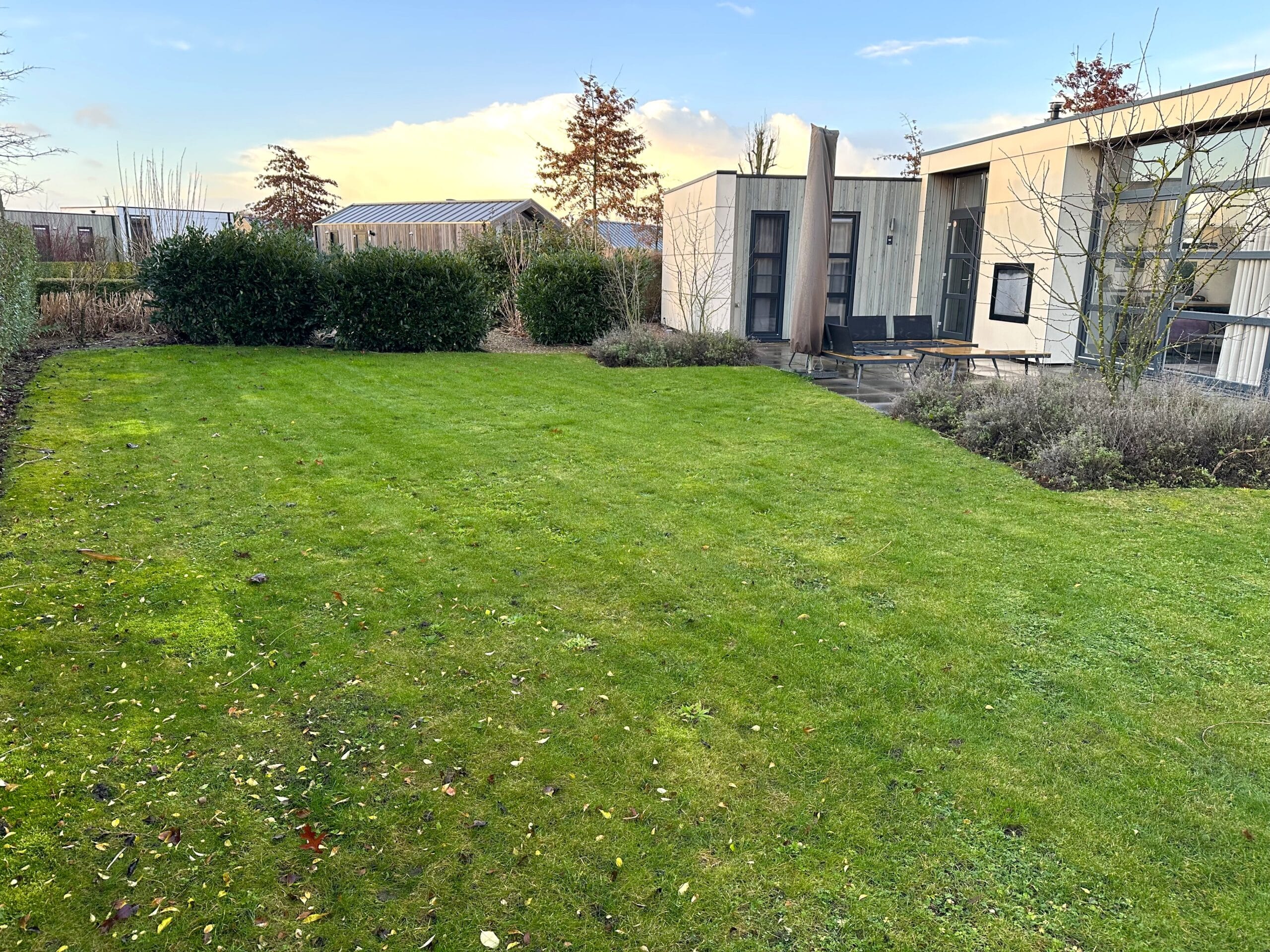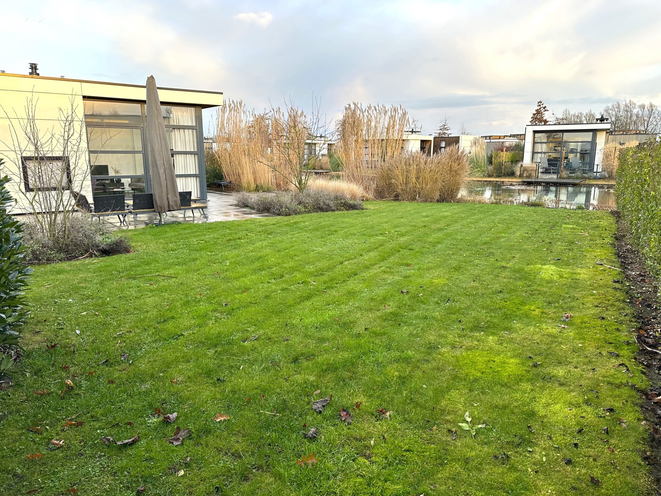 De Zeer riante tuin van maar liefst 420 m² bevind zich direct aan een grote vijver. Door het gebruik van veel bomen en planten creëer je een groene oase van rust en het zorgt voor extra privacy in de tuin. Er is een betegeld terras en er is een grasveld om de groene oase te benadrukken. Er is een vlonder aangelegd zodat u een eigen plekje aan het water heeft. Wilt u even ontsnappen aan het drukke alledaagse leven dan is dit uw ideale vakantiehuis. Aan de achterzijde van het vakantiehuis bevindt zich een privé parkeerplaats.
