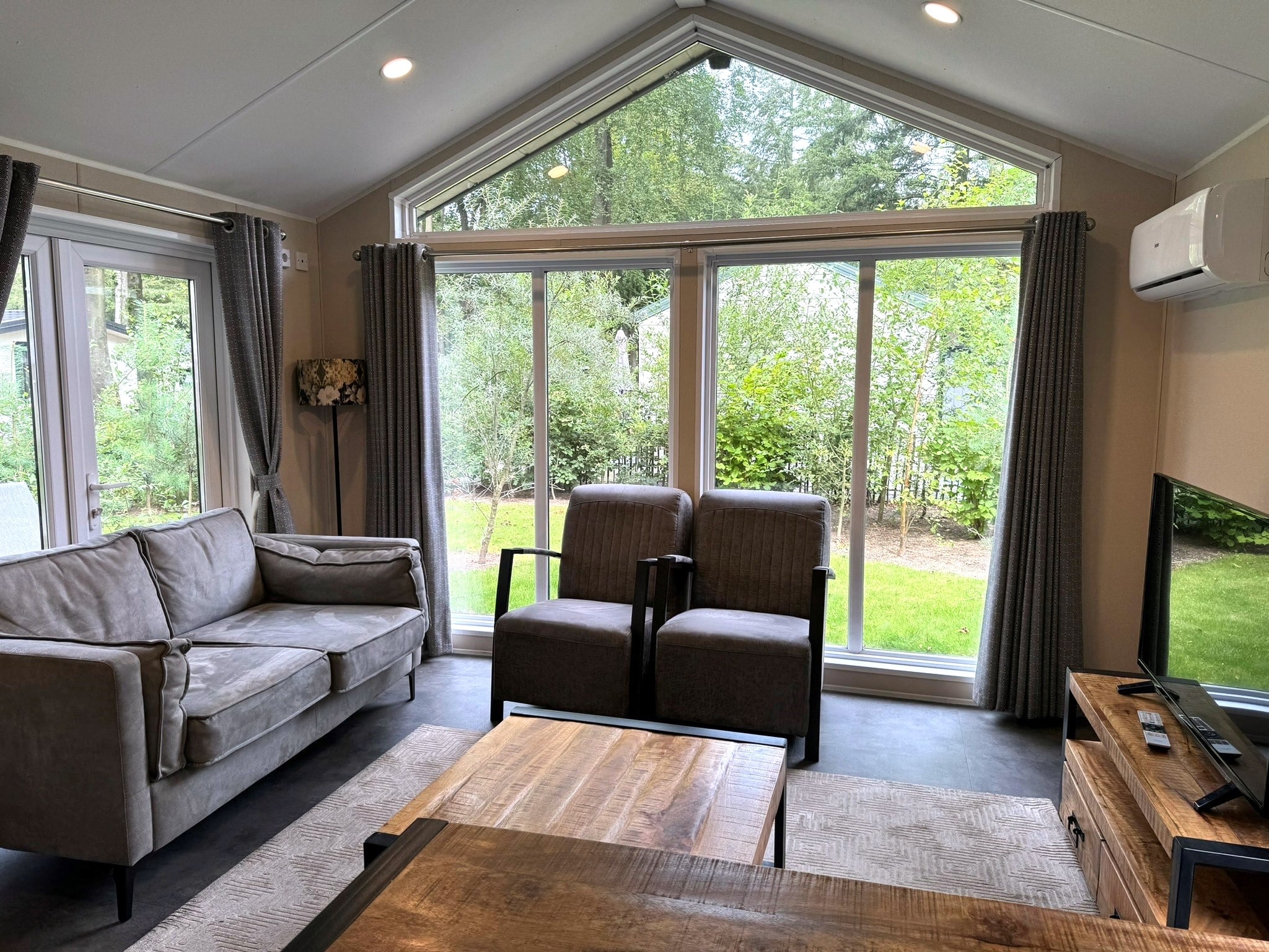Het vakantiehuis beschikt over een royale woonkamer met een open eet en woon gedeelte. De combinatie van de vele grote raampartijen geven u een extra ruimtelijk gevoel en natuurlijk een mooi uitzicht over de tuin. Doormiddel van terrasdeuren loopt u zo vanuit de woonkamer uw Betegeld terras op waar u heerlijk kunt genieten van uw eigen plekje onder de zon.