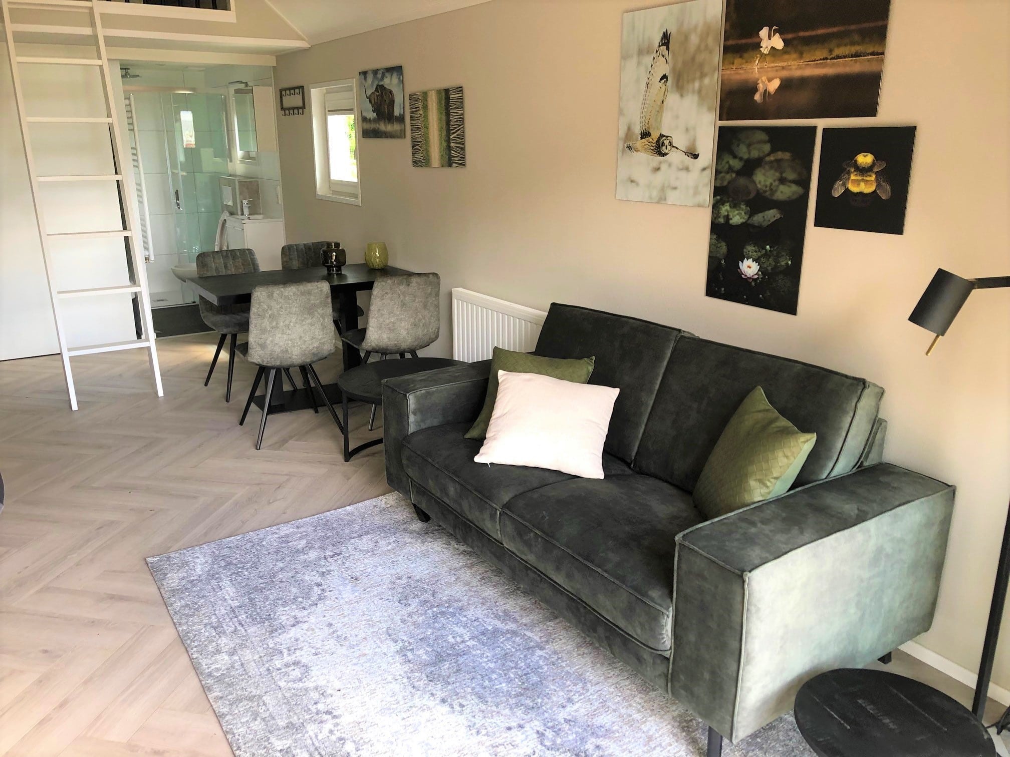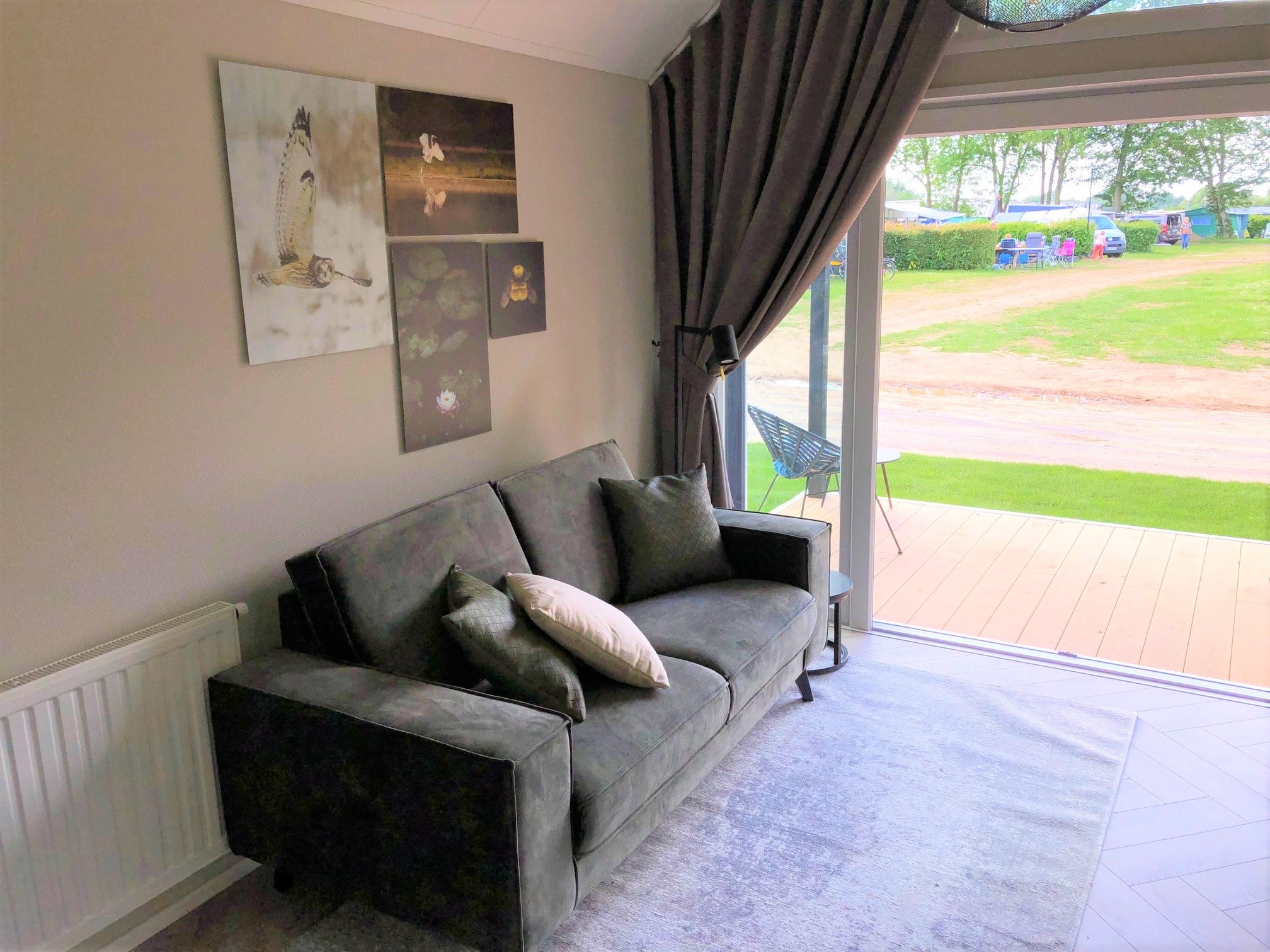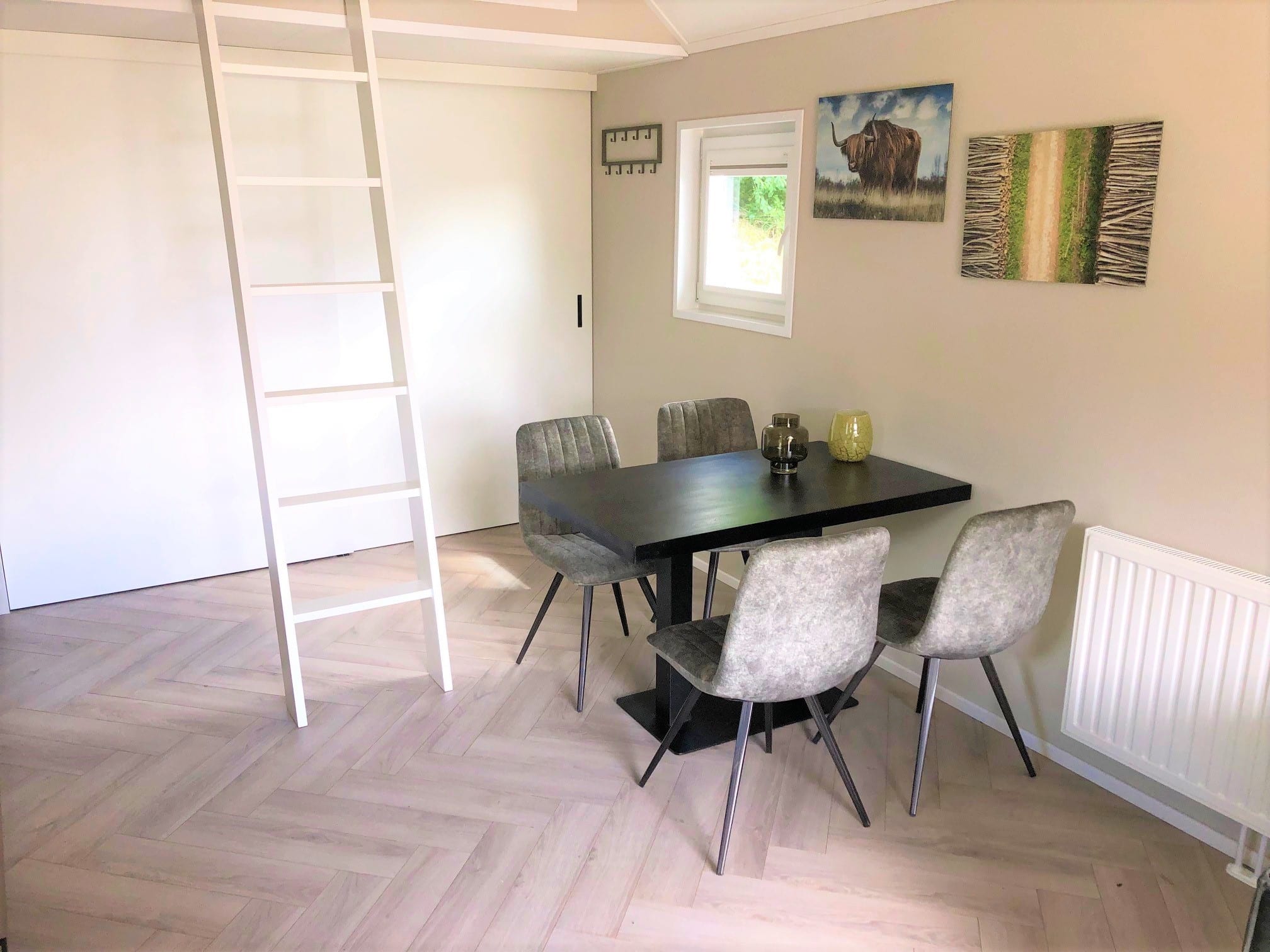 De royale woonkamer heeft een open eet- en woongedeelte. Dit type vakantiehuis heeft een extra verhoogd plafon, hierdoor krijgt u een veel ruimtelijker gevoel. Dit wordt nog eens versterkt door de vele grote raampartijen die zorgen voor veel lichtinval en geven een nog ruimtelijker gevoel en natuurlijk een prachtig mooi uitzicht over de tuin. Doormiddel van dubbel openslaande terrasdeuren loopt u zo vanuit de woonkamer uw overdekt terras op, waar u heerlijk kunt genieten van uw eigen oase van rust. Je eigen vakantiehuis op de Wood Lodge Village. wie wil dat nu niet! (meubel en inventaris tegen meerprijs leverbaar)