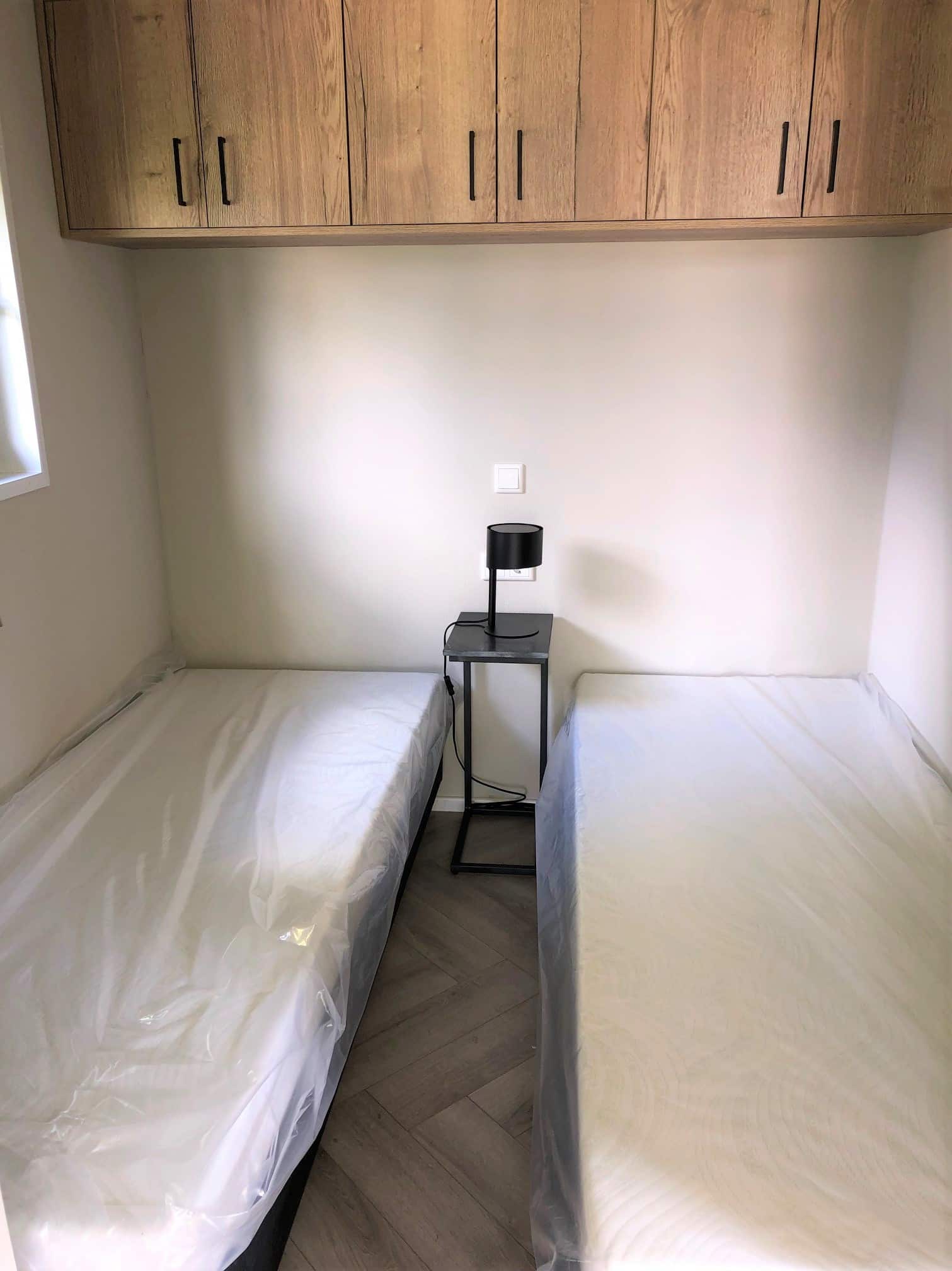 Er zijn twee ruime slaapkamers waarvan 1 ruime slaapkamer op de begane vloer. Met twee eenpersoonsbedden (boxspring), zweefkasten, draai/kiep raam, radiator. De tweede slaapkamer bevind zich boven op de vide, hier staat een tweepersoonsbed. Vanuit de vide heb je ui9tzicht over de woonkamer.