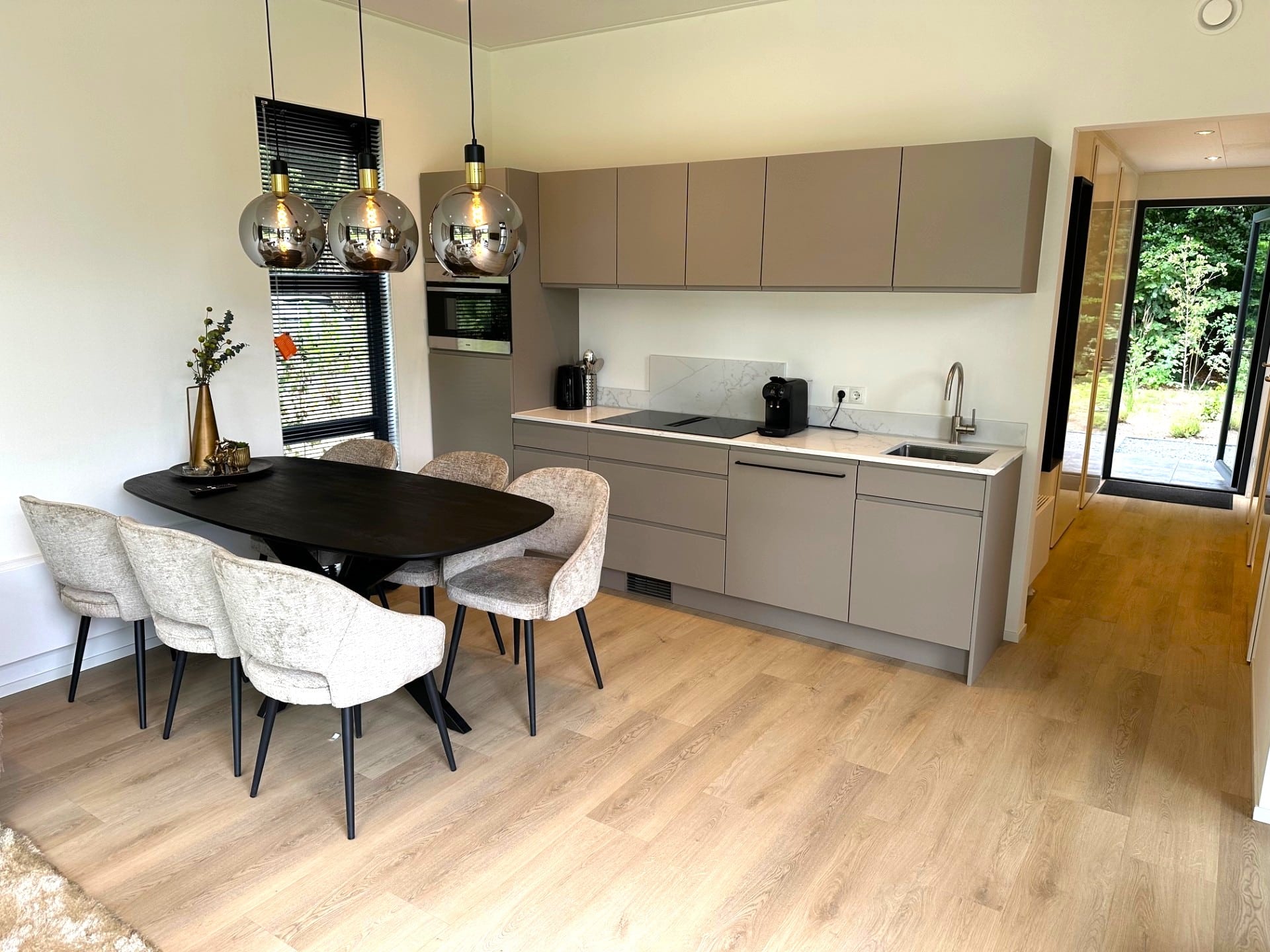 De luxe, moderne keuken van Villa Bosrijk Z beschikt over een moderne keuken in een stijlvolle mat taupe kleur. Deze keuken is van alle gemakken voorzien: een 4-pits inductiekookplaat met afzuigkap, combimagnetron, ruime koelkast met vriesvak, afwasbak met kraan en volop kastruimte. Dankzij de slimme indeling is er verrassend veel opbergruimte en werkcomfort. Hier kook je met plezier, of je nu een snelle lunch bereidt of uitgebreid dineert met familie of vrienden