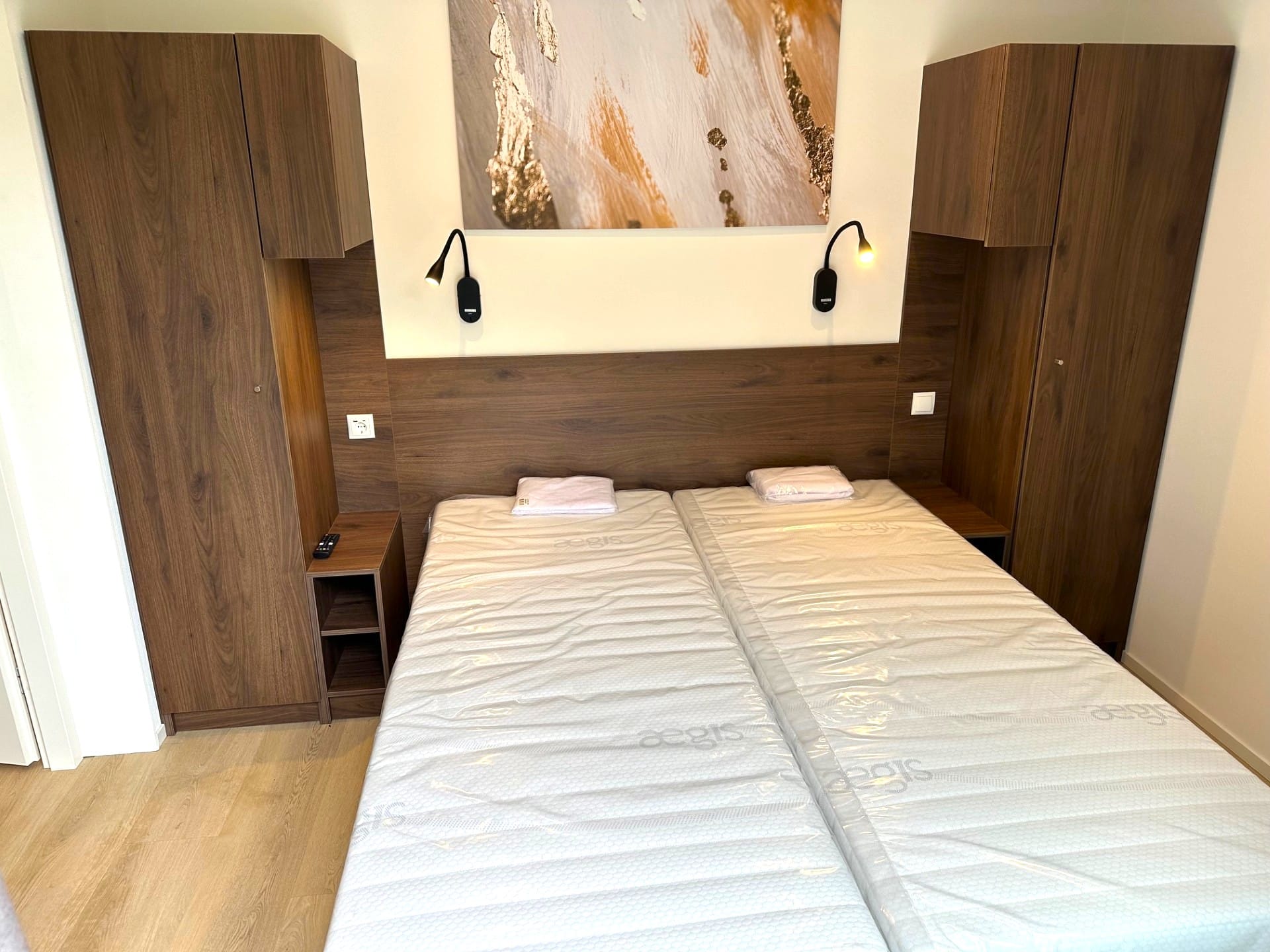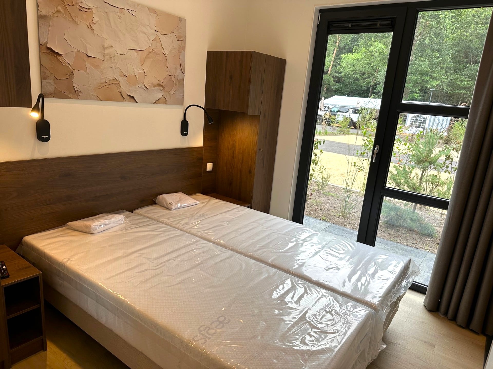 Villa Bosrijk Z beschikt over twee of drie ruime slaapkamers. De master bedroom heeft een badkamer ensuite en is ingericht met een comfortabel tweepersoonsbed (boxspring), inbouwkasten met schuifdeuren en draai-/kiep-raamkozijnen voor optimaal licht en ventilatie. De tweede slaapkamer heeft twee eenpersoonsbedden (boxspring), een inbouwkast en een draai-/kiep-raamkozijn. Optioneel is een derde slaapkamer beschikbaar tegen een meerprijs, waardoor de villa nog meer ruimte biedt voor uw gezin of g